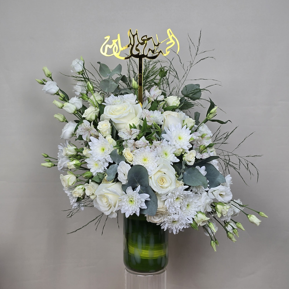 فازة تحتوي على الجوري، الكريز والالستروميريا.