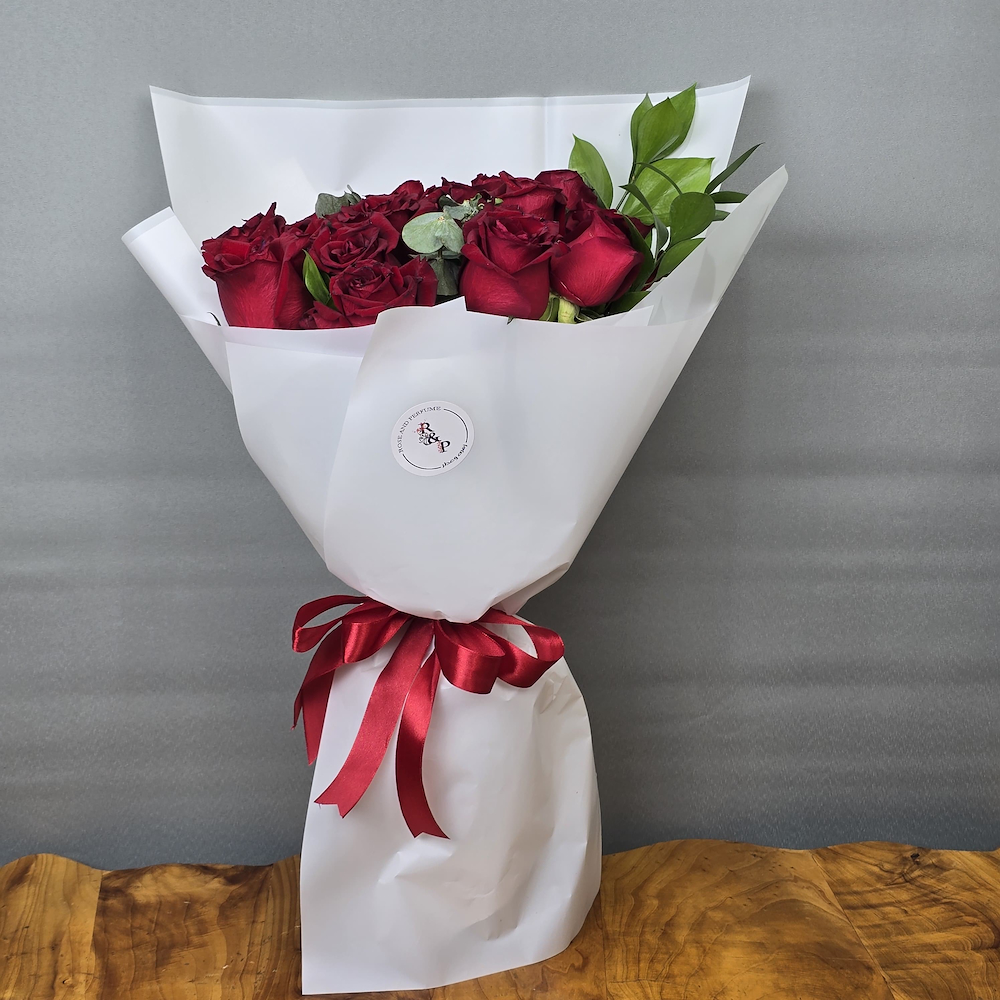 باقة تتميز من أزهار الجوري باللون الأحمر.