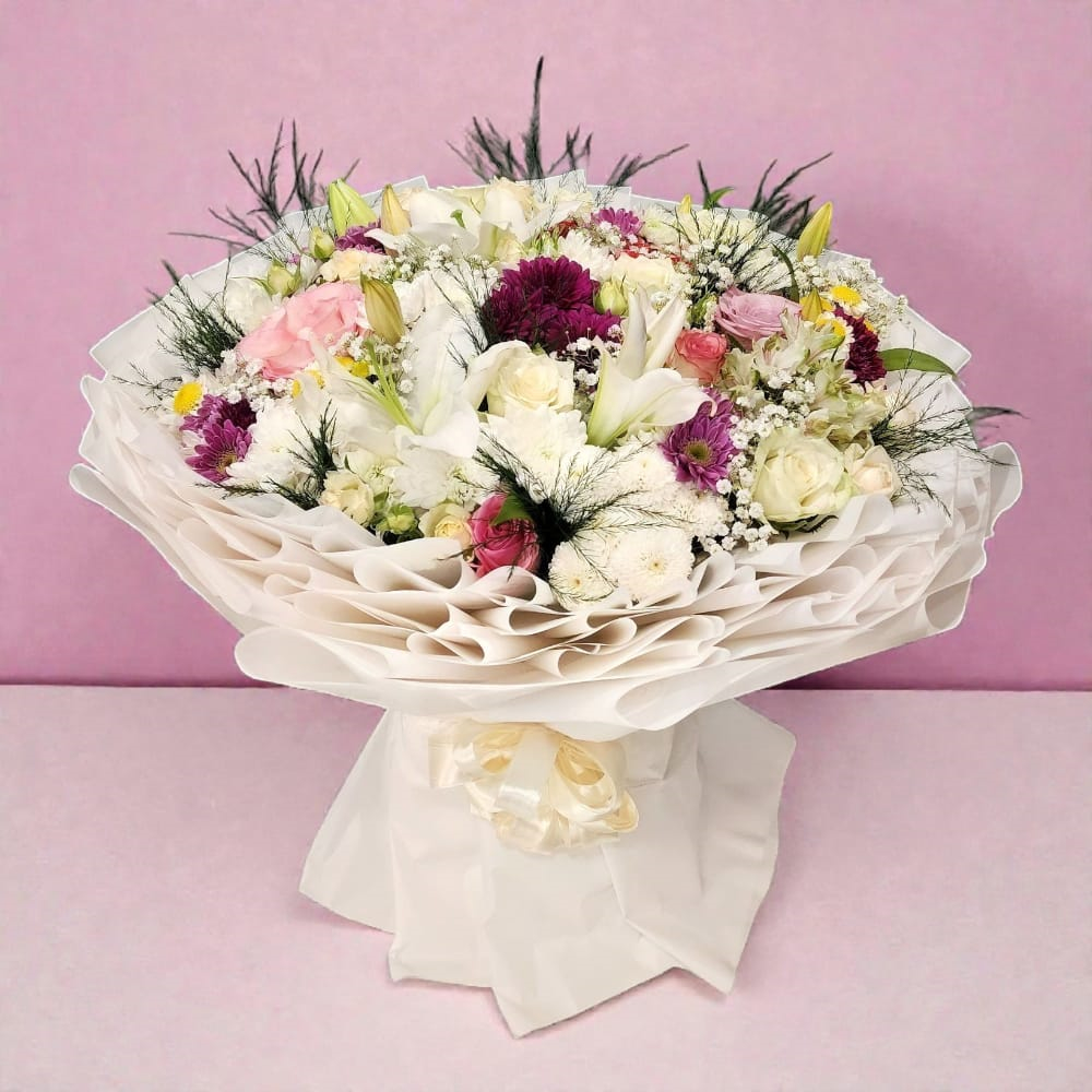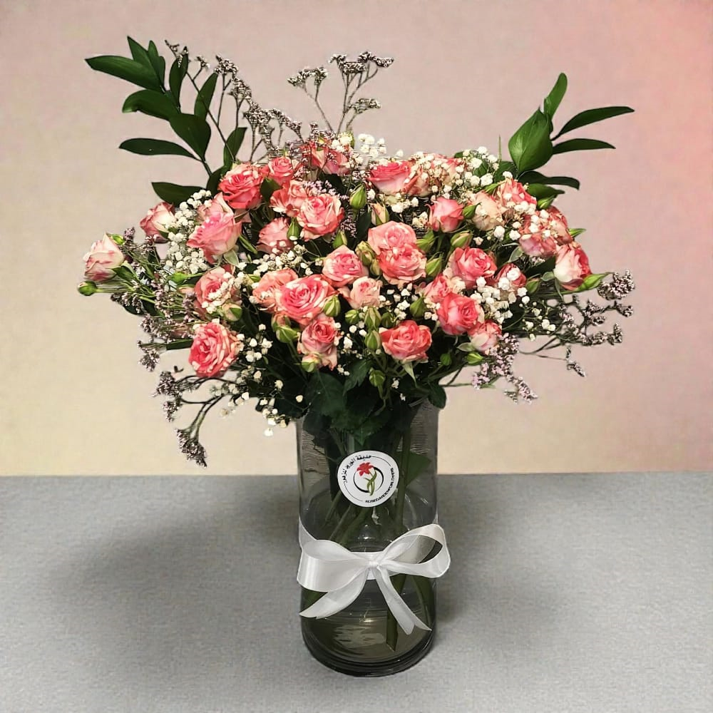 فازة من ورد البيبي روز الناعم الأبيض يحمل مشاعر الحب والنقاء.