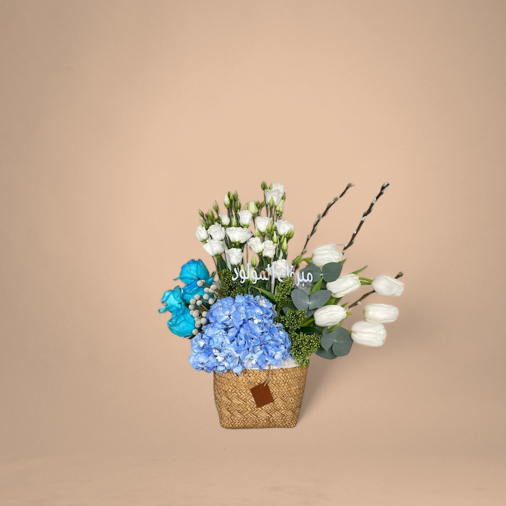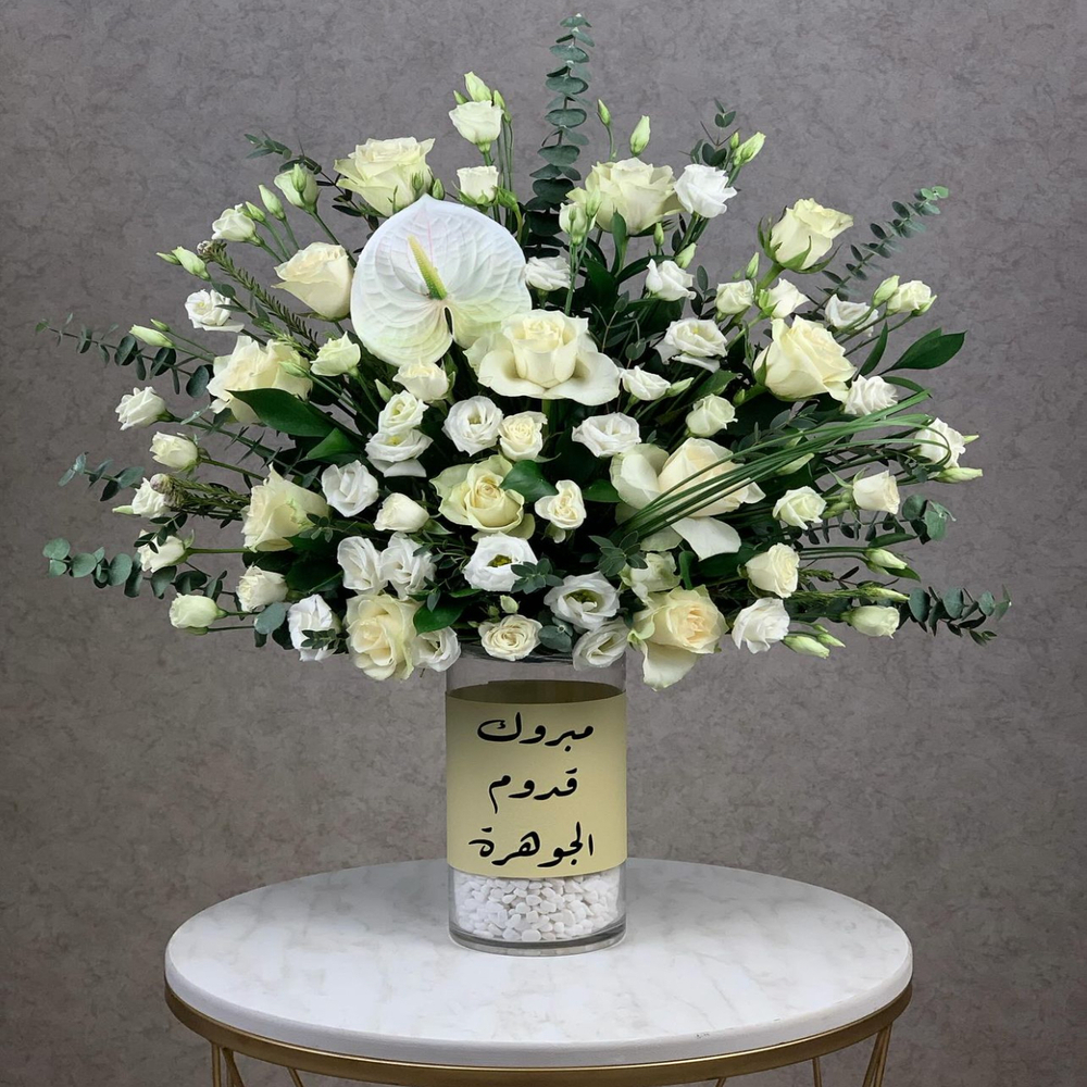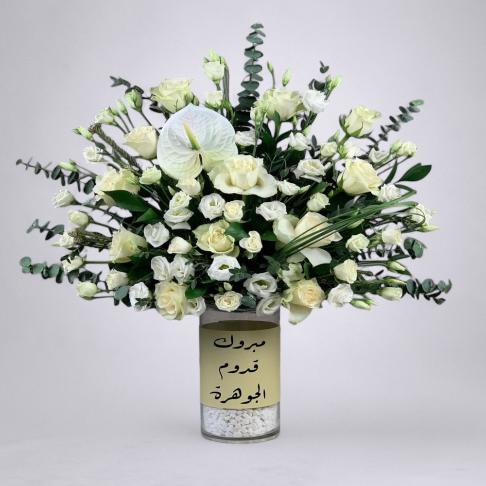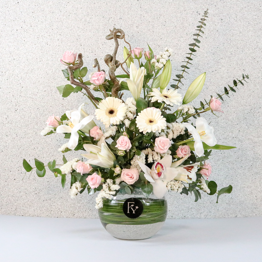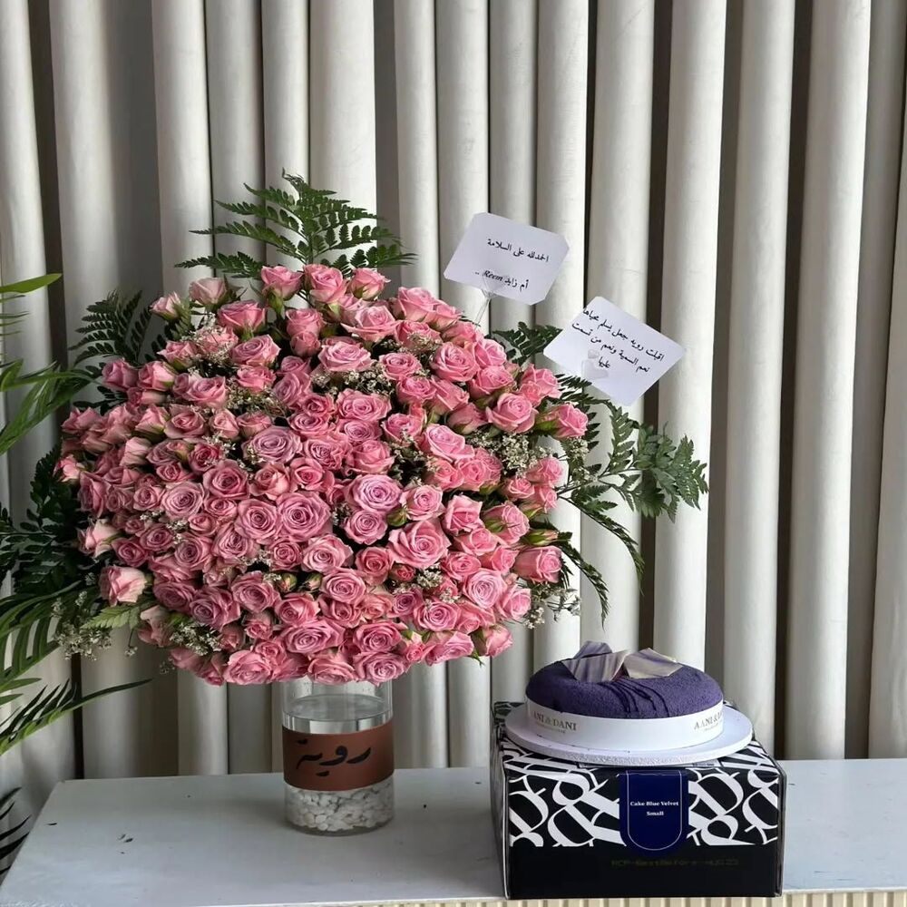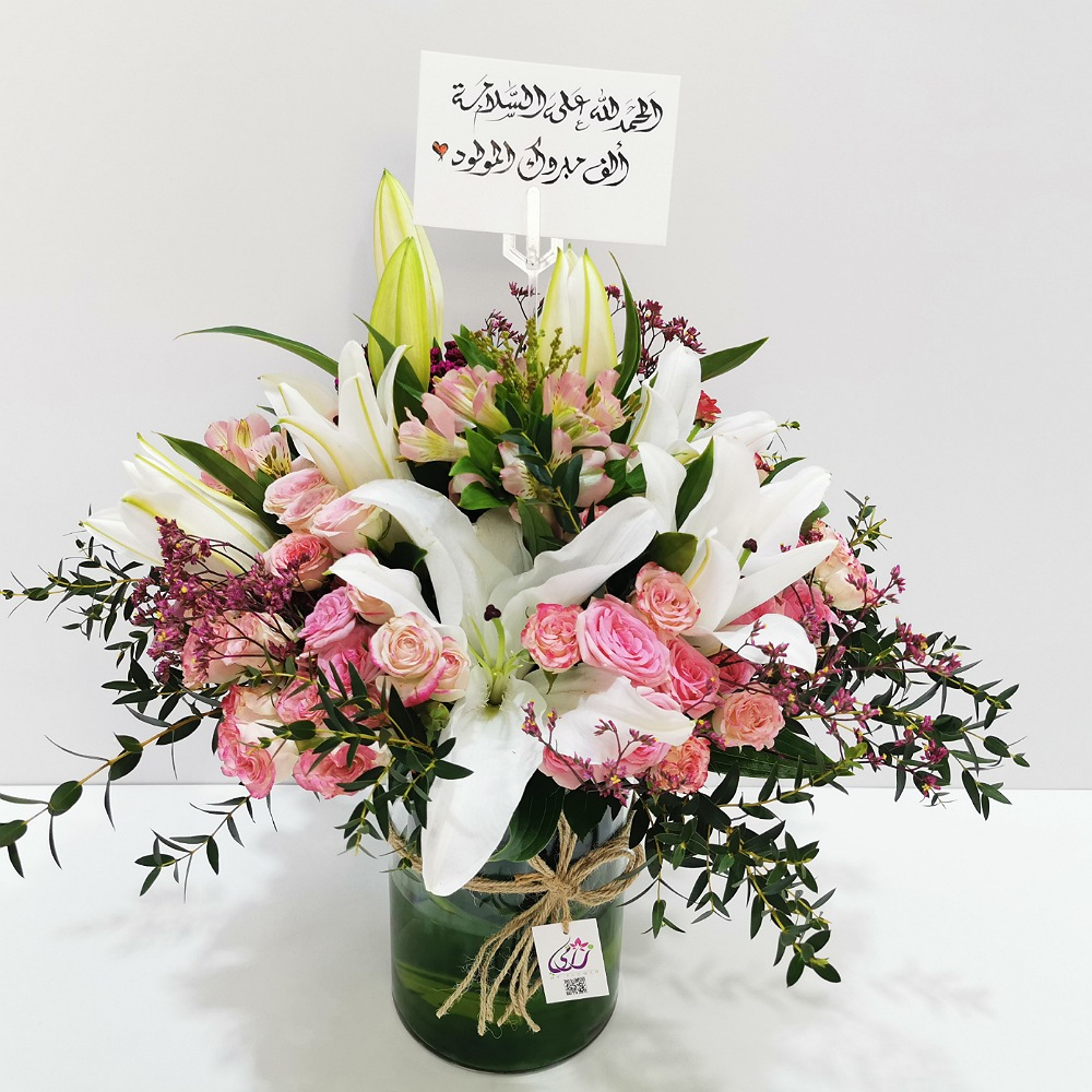 باقة تحتوي على الجوري ومزيج من الزهور.
