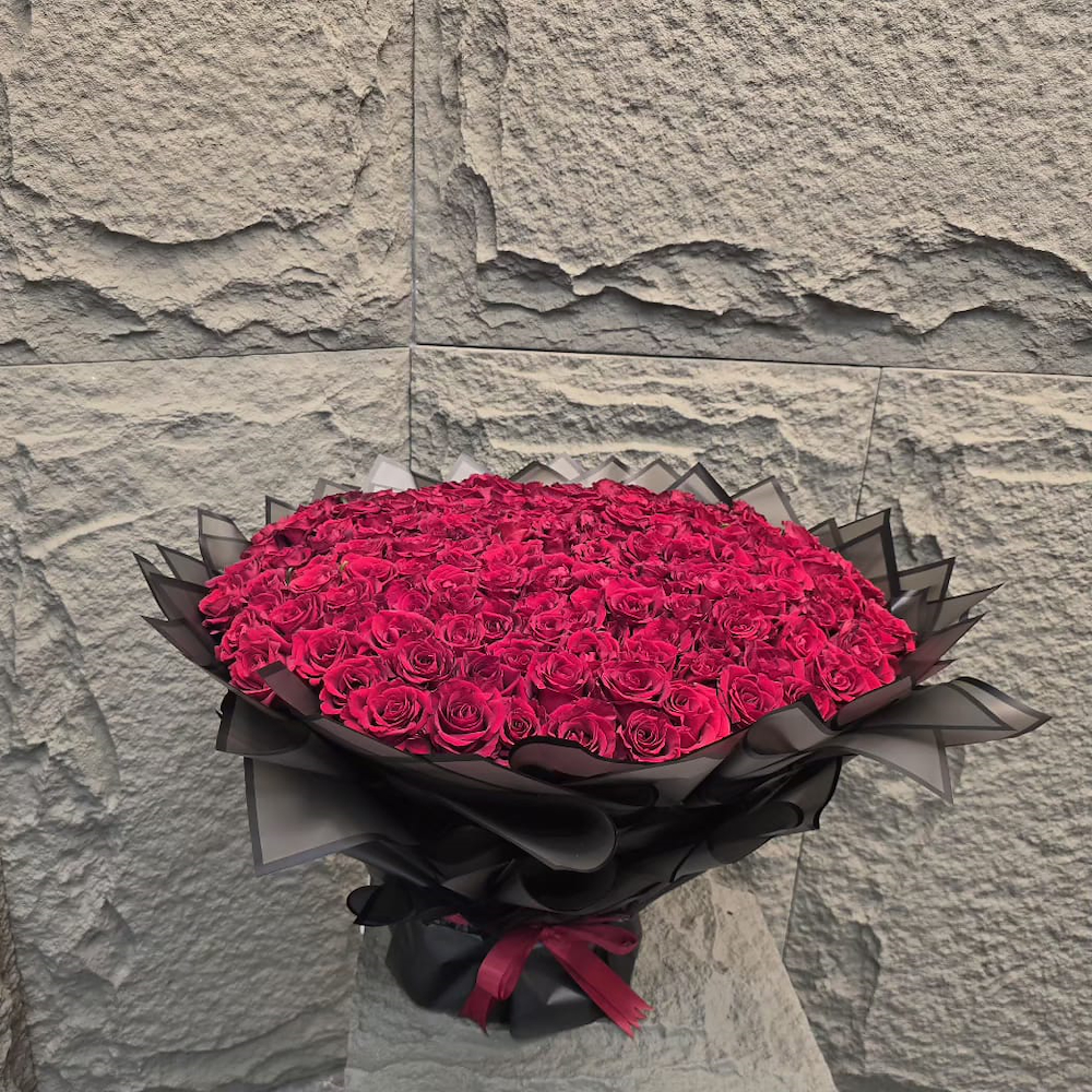 بوكيه يحتوي الجوري الاحمر100 قطعة.