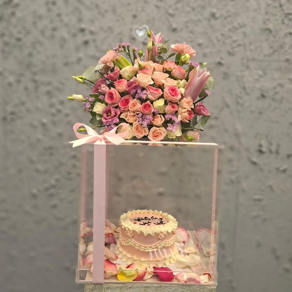 صندوق يحتوي على الجوري، الجيربيرا والليليز مع شوكولاتة من باتشي.