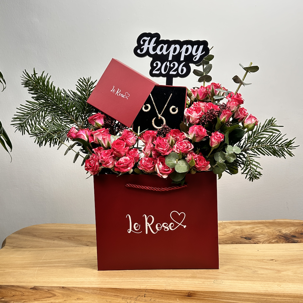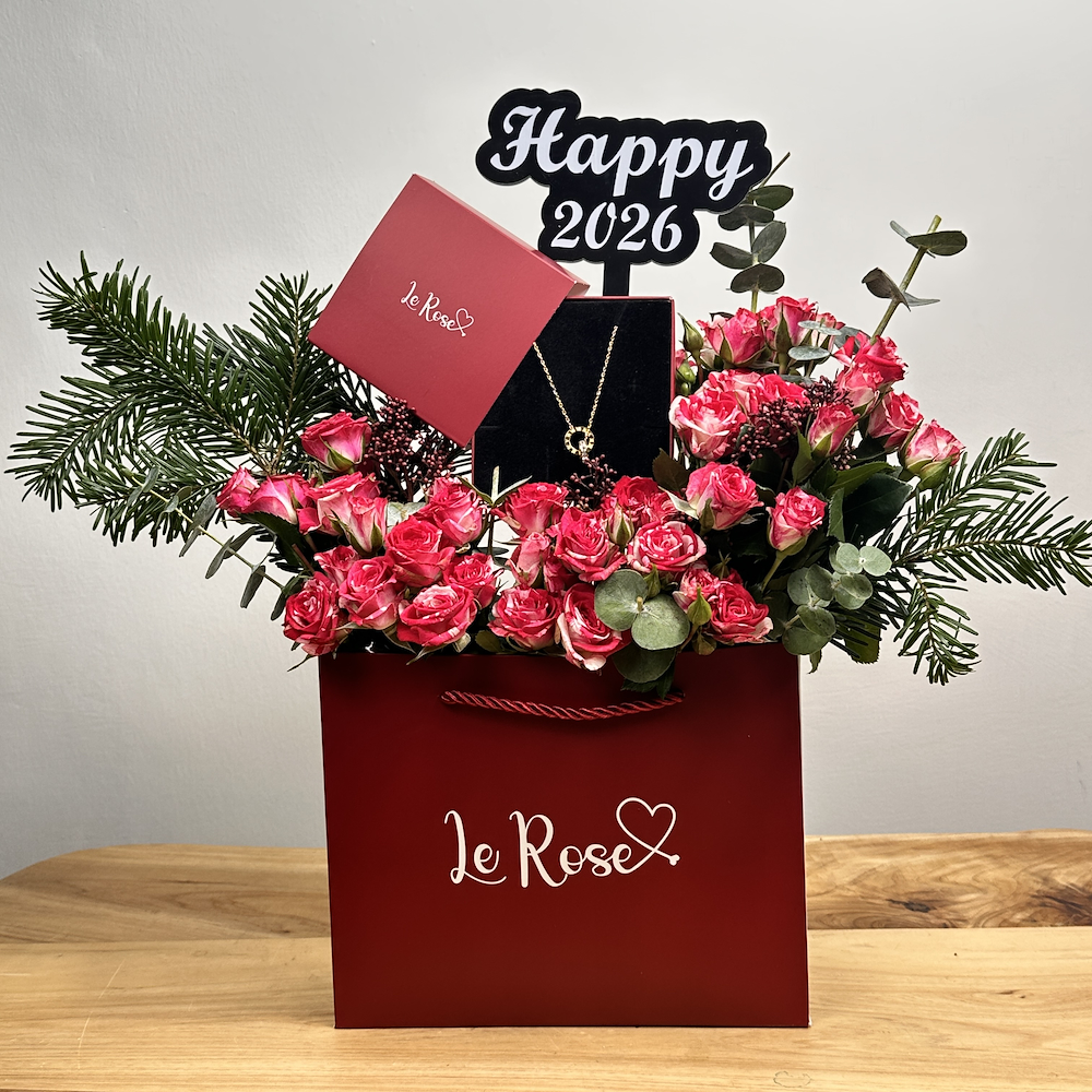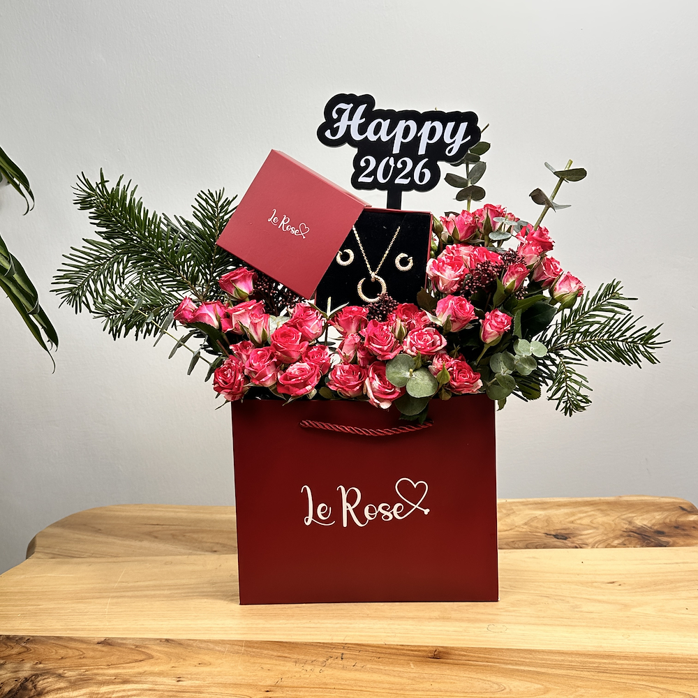 مجموعة عقد وأقراط مميزة تضم ورود طبيعية مع أغطية من الأكريليك، العقد من علامة لي روز، نوع الإكسسوار مجموعة عقد وأقراط، نوع المعدن معدن مطلي بالذهب.