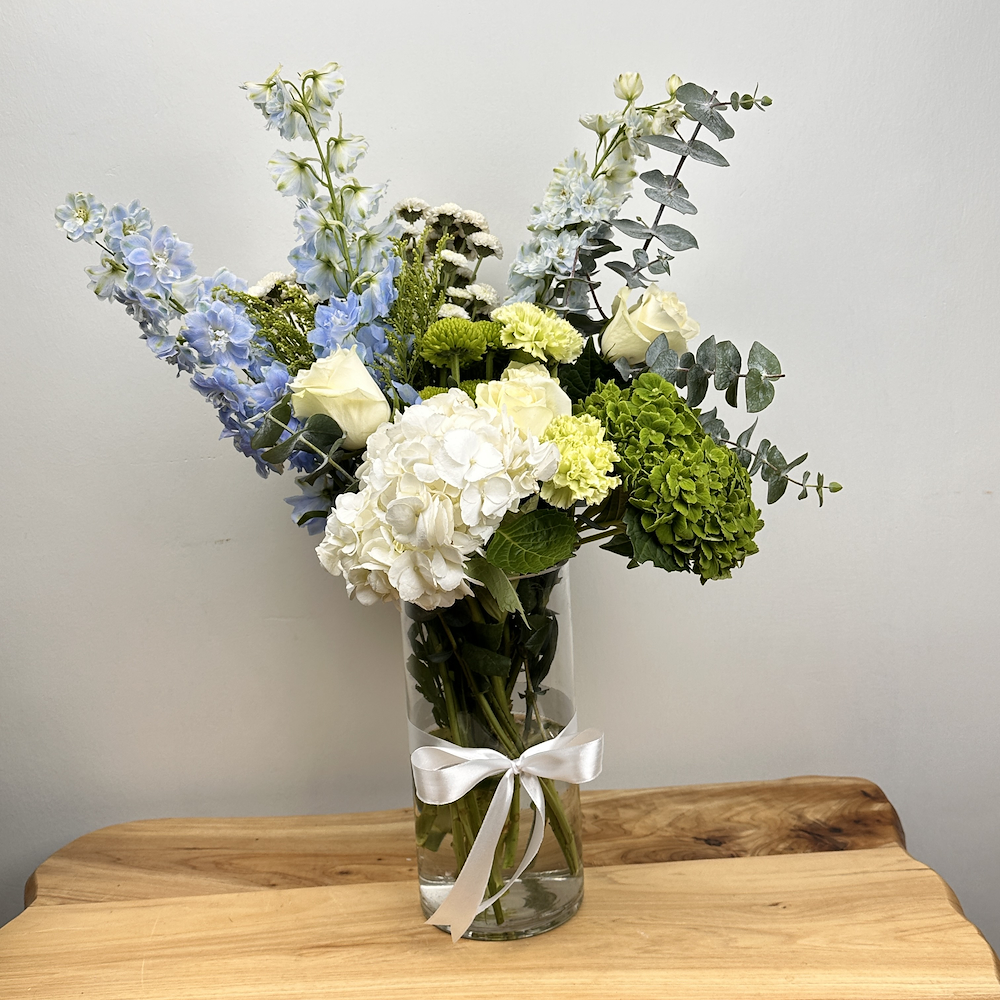 باقة زهور طبيعيه ليلي وبيبي روز وتوبر اكريلك.