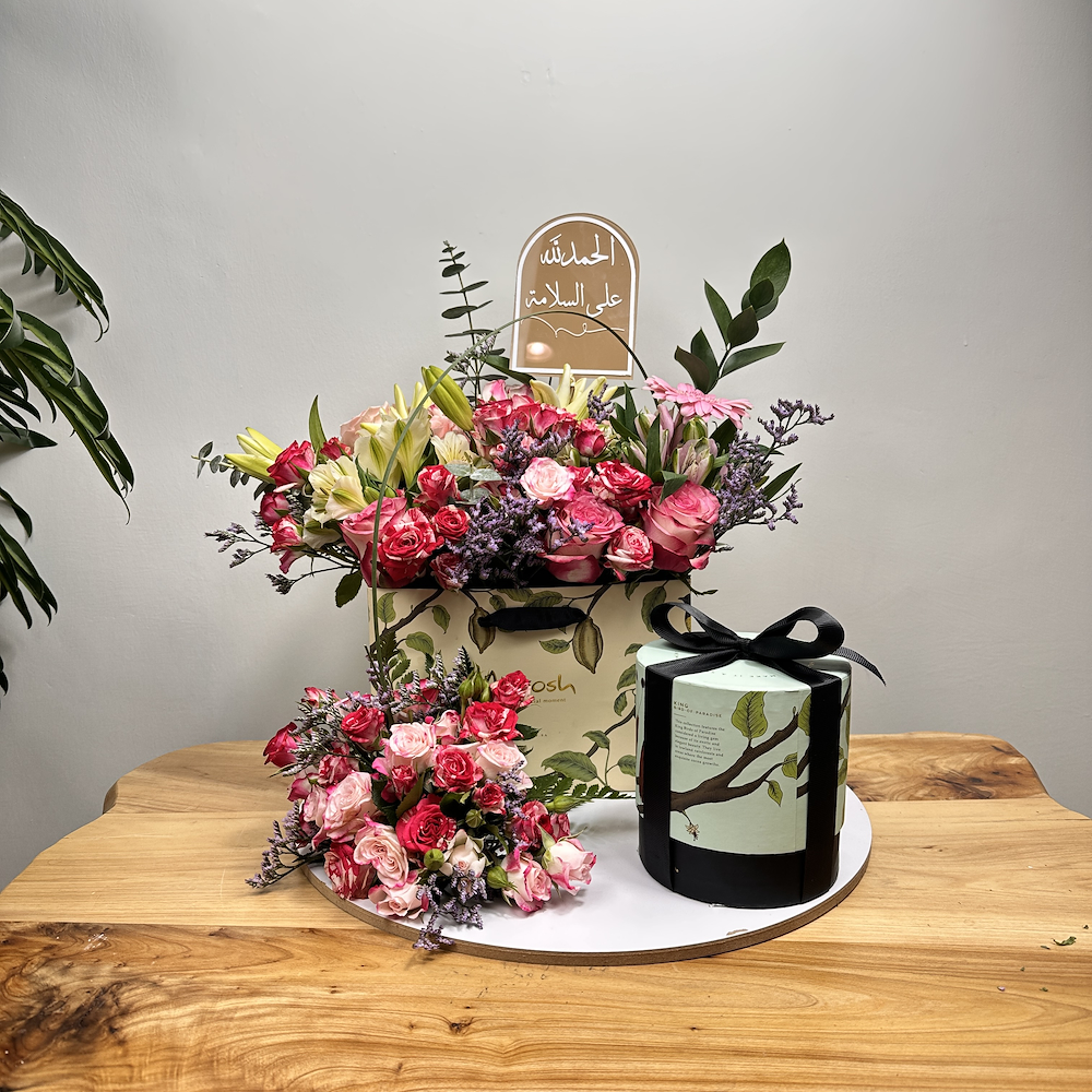صندوق يحتوي على الجوري، البيبي جوري والليليز مع شوكولاتة بستاني.
