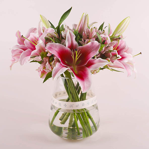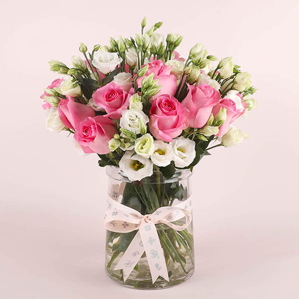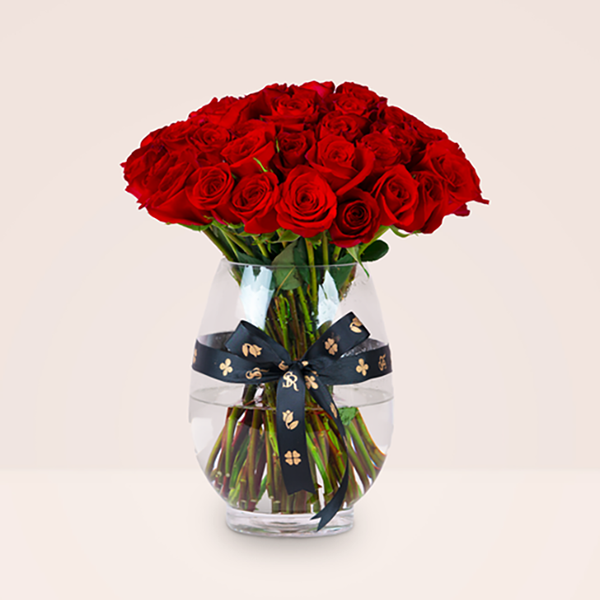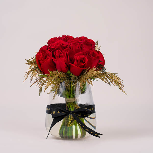 فازة من الجوري الاحمر والسايبرس الذهبي.