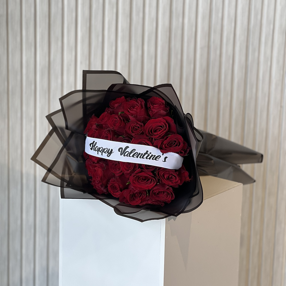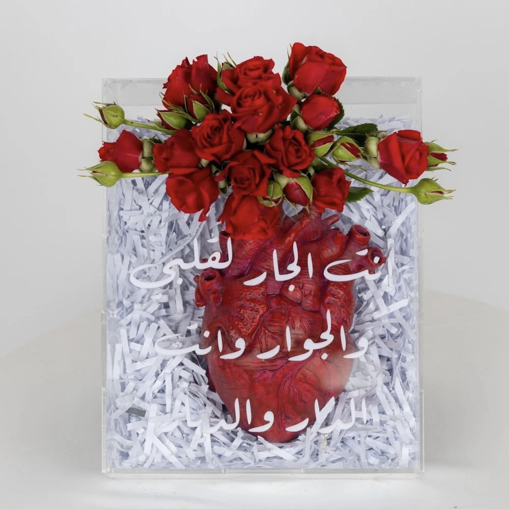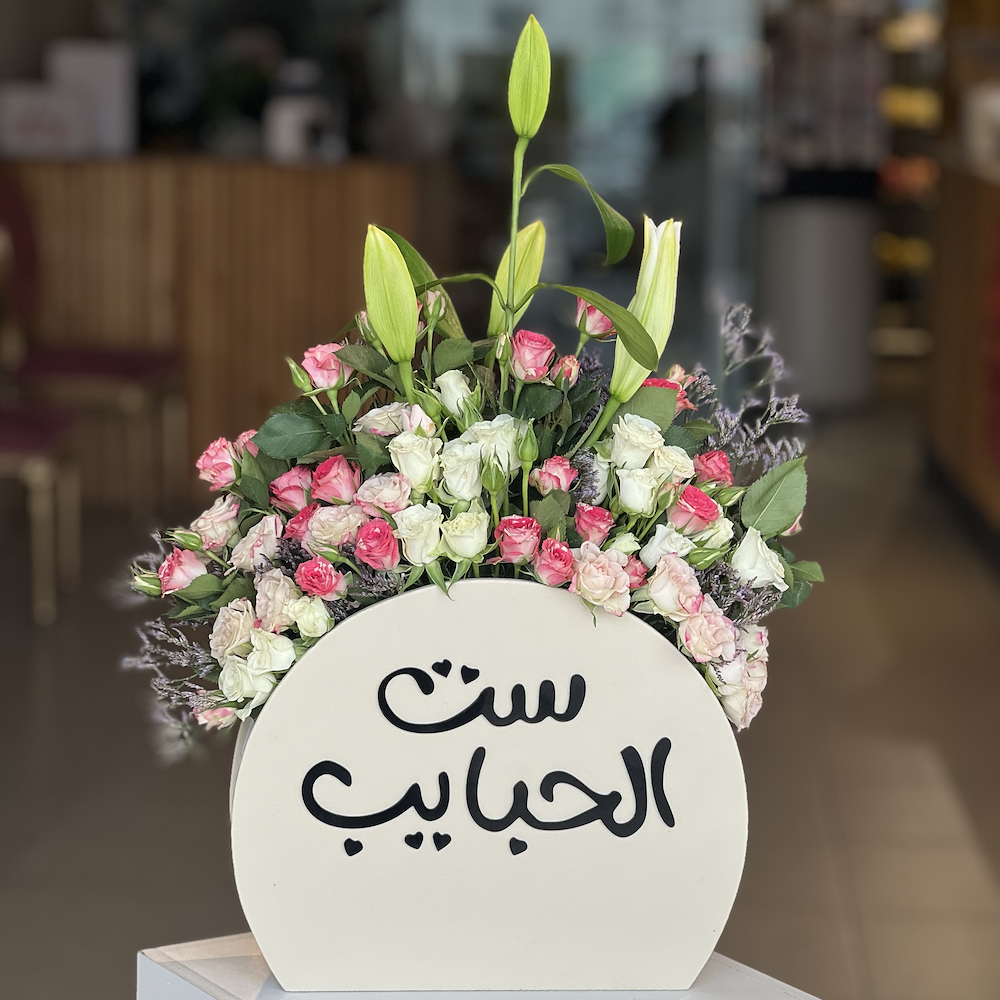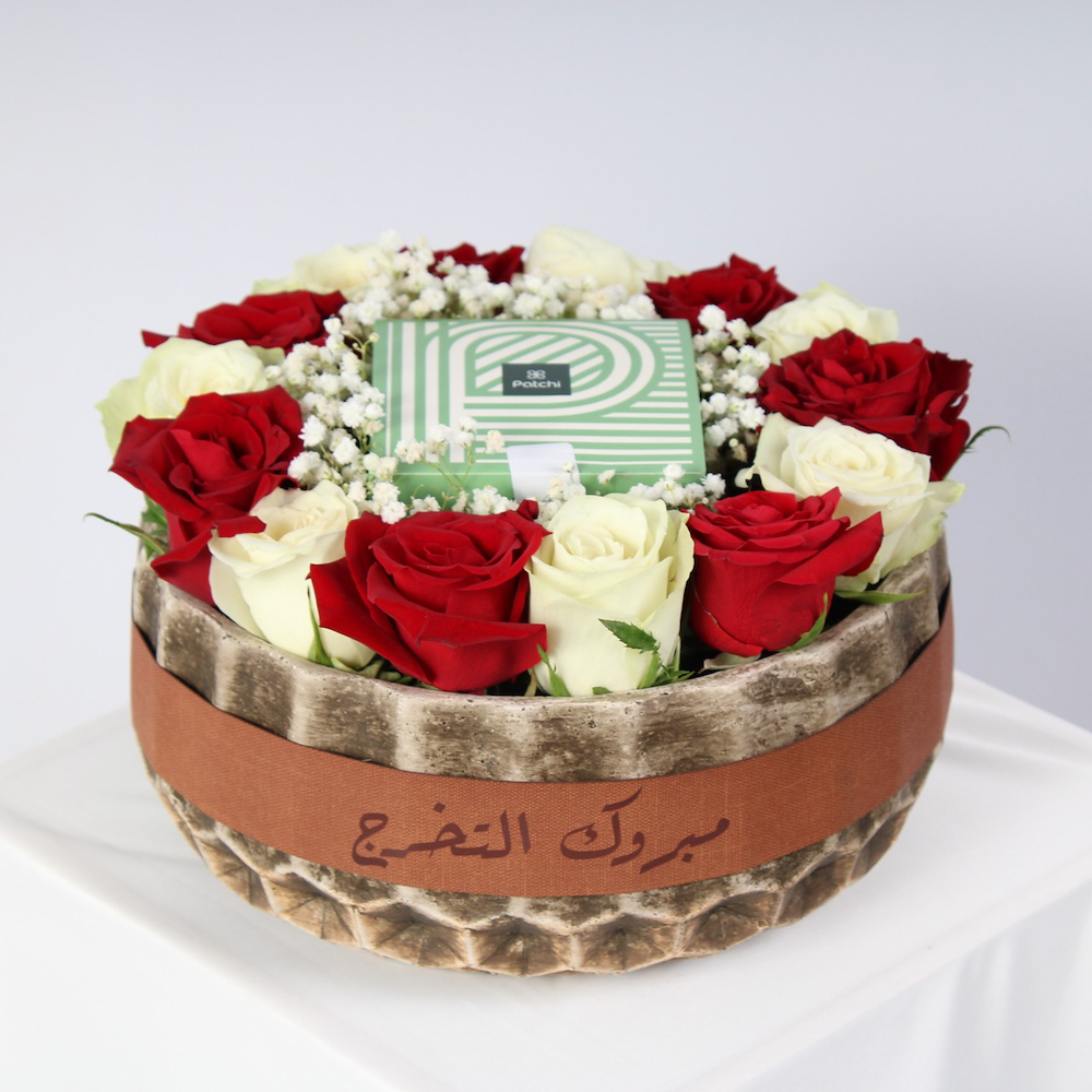 الفازة الحمراء تتكون من البيبي روز مع الجوري.