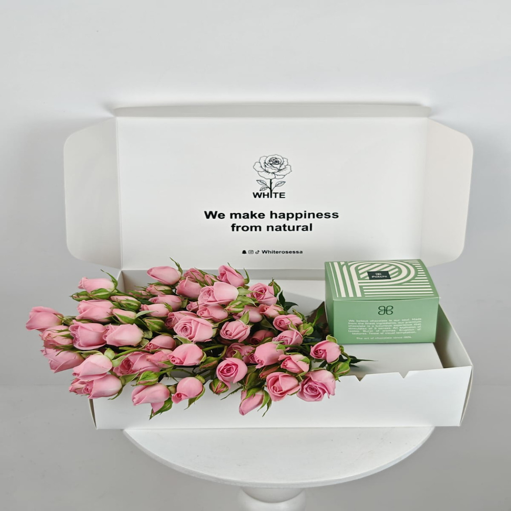 تناغم أنيق يجمع بين شوكولاتة باتشي الفاخرة ولمسة من زهور الجوري الصغيرة الوردية الناعمة ليجمع بين طعم الفخامة وعبير الزهور الحالم.