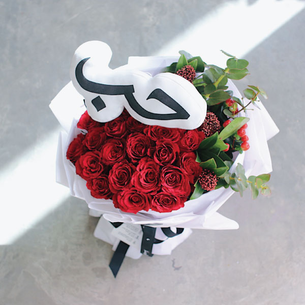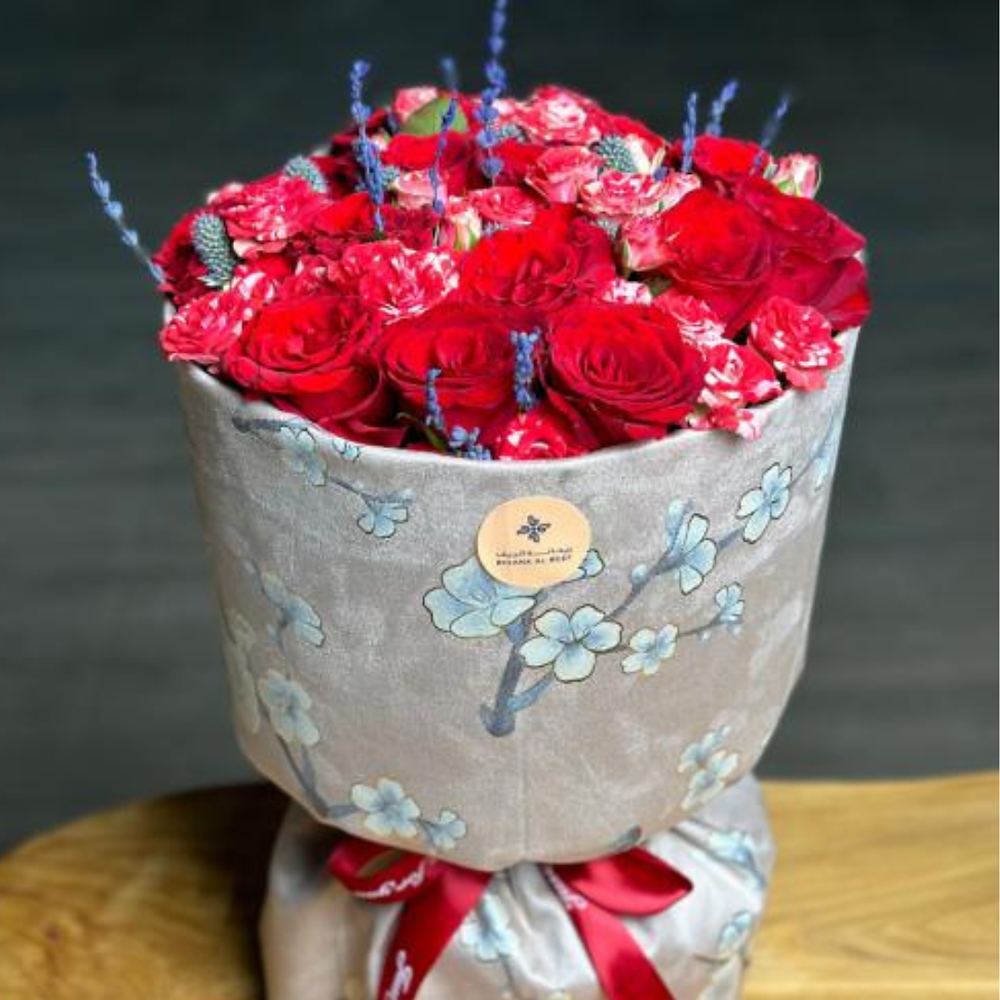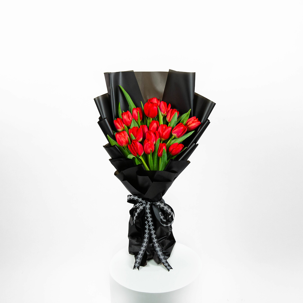 باقة يد من زهور التوليب باللون الأحمر.