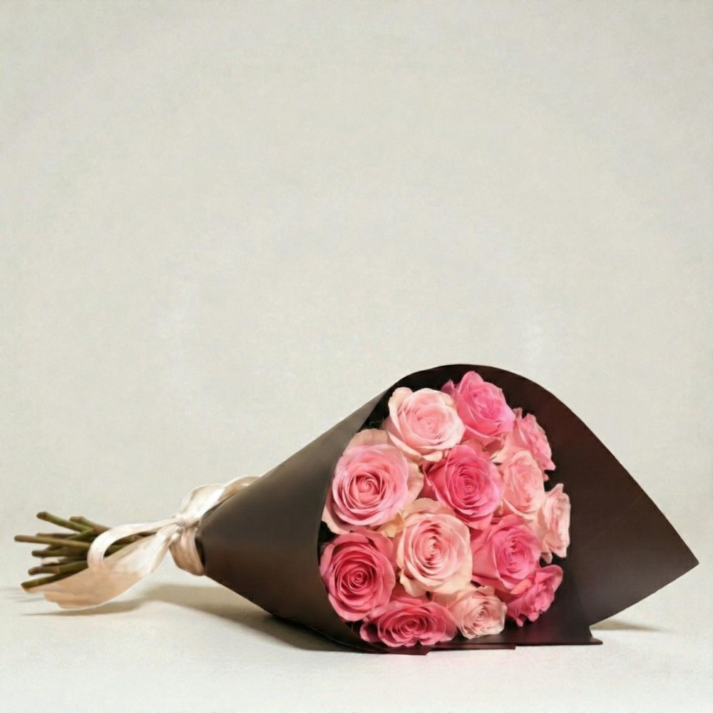 باقة أنيقة تحتوي على 12 من أزهار الجوري، بتصميم فاخر.