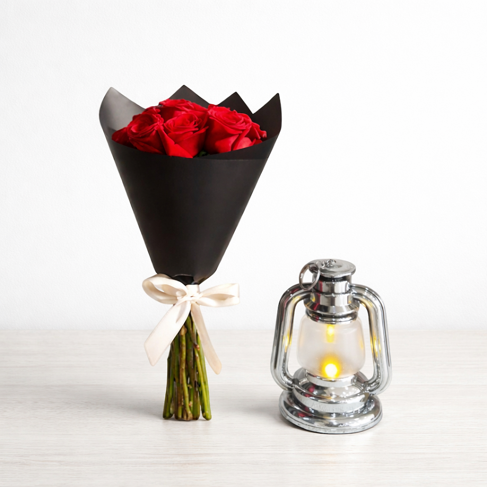 بوكس يحتوي على 15 بيبي روز، 5 توليب، ليمونيوم وأوراق الدراكاينا الخضراء مع لوح شوكولاتة باتشي الداكنة "نوبليس"، المصنوعة من 70% كاكاو، وتتميّز بمذاقها الغني والفخم، بوزن 50 غرام.