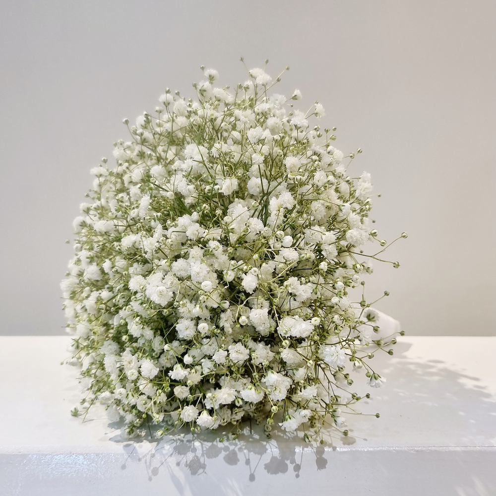 باقة يد مميزة مليئة بأزهار الجبسوفيلا الناعمة.
