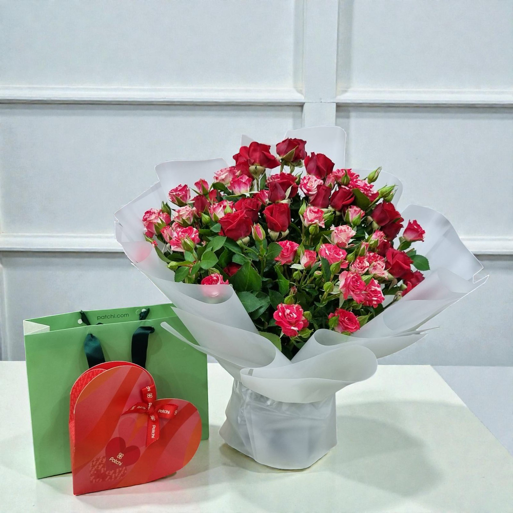 تتضمن الهدية 10 زهرة جوري مع لمسات من اللافندر، بالإضافة إلى مسبحة بيضاء كرمز محبة وتقدير للأب.