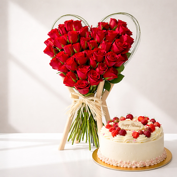 ورد احمر مع كيكة