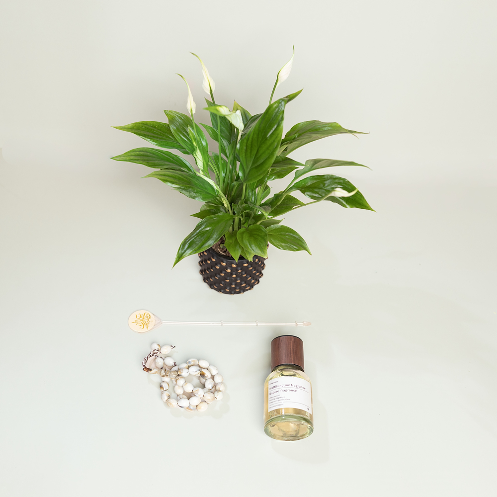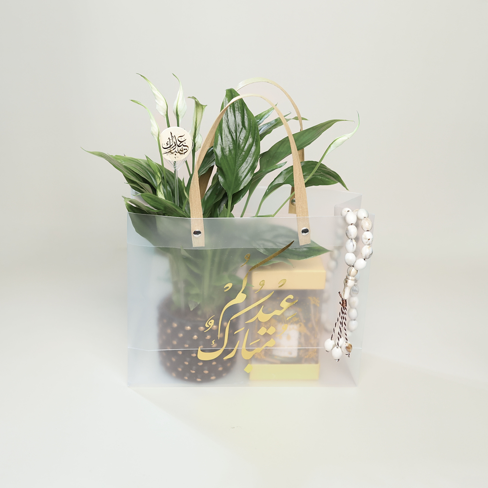 حقيبة تحتوي على نبتة الأجنحة البيضاء، مسبحة وفواحة.