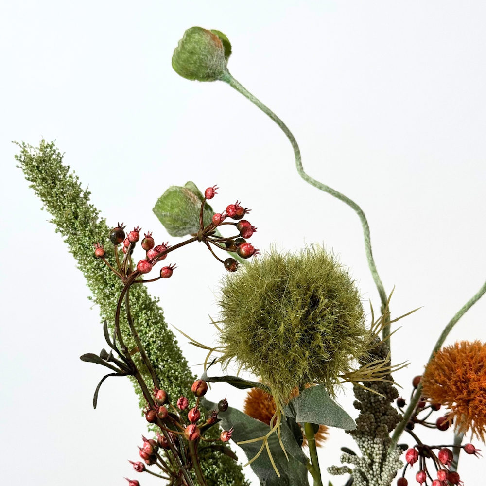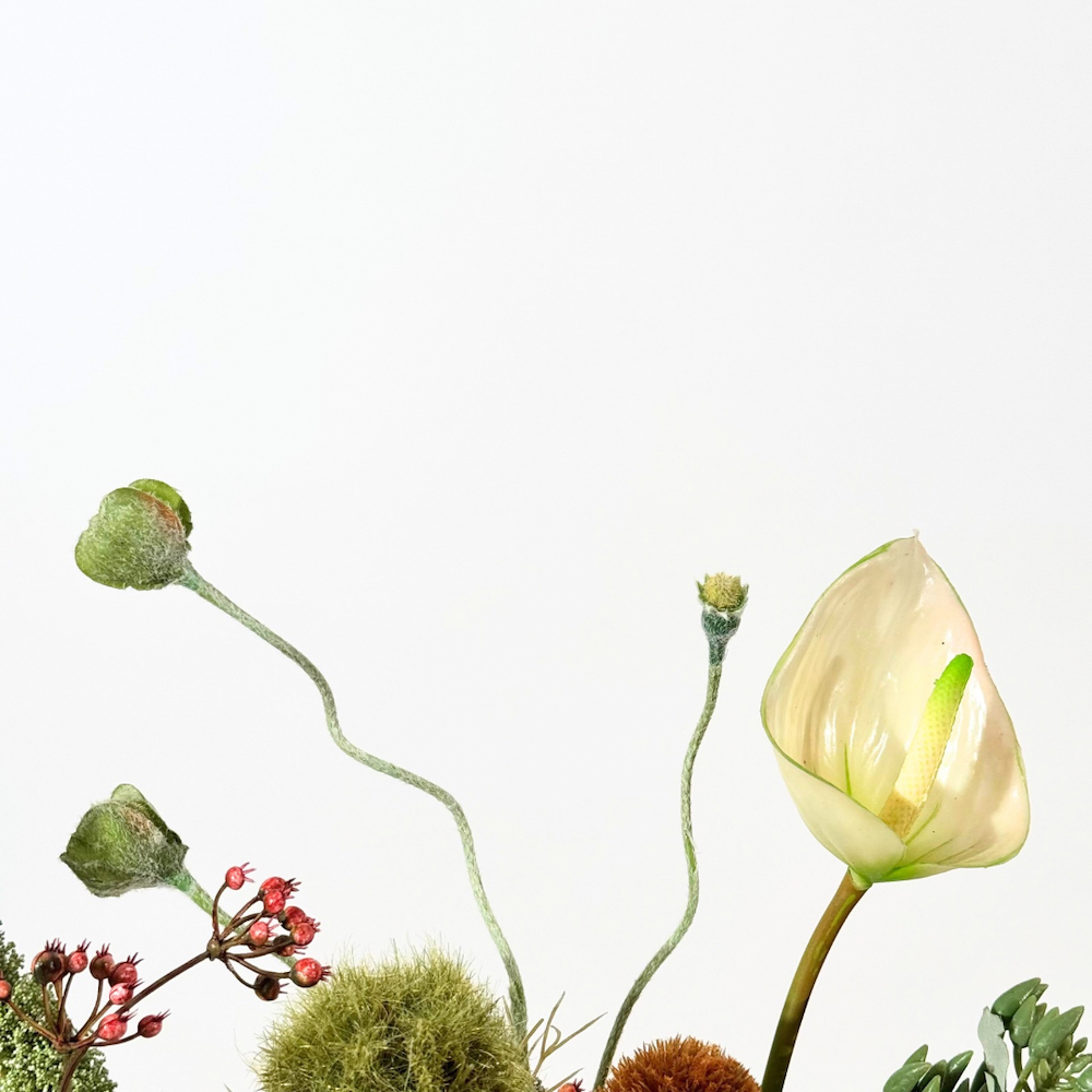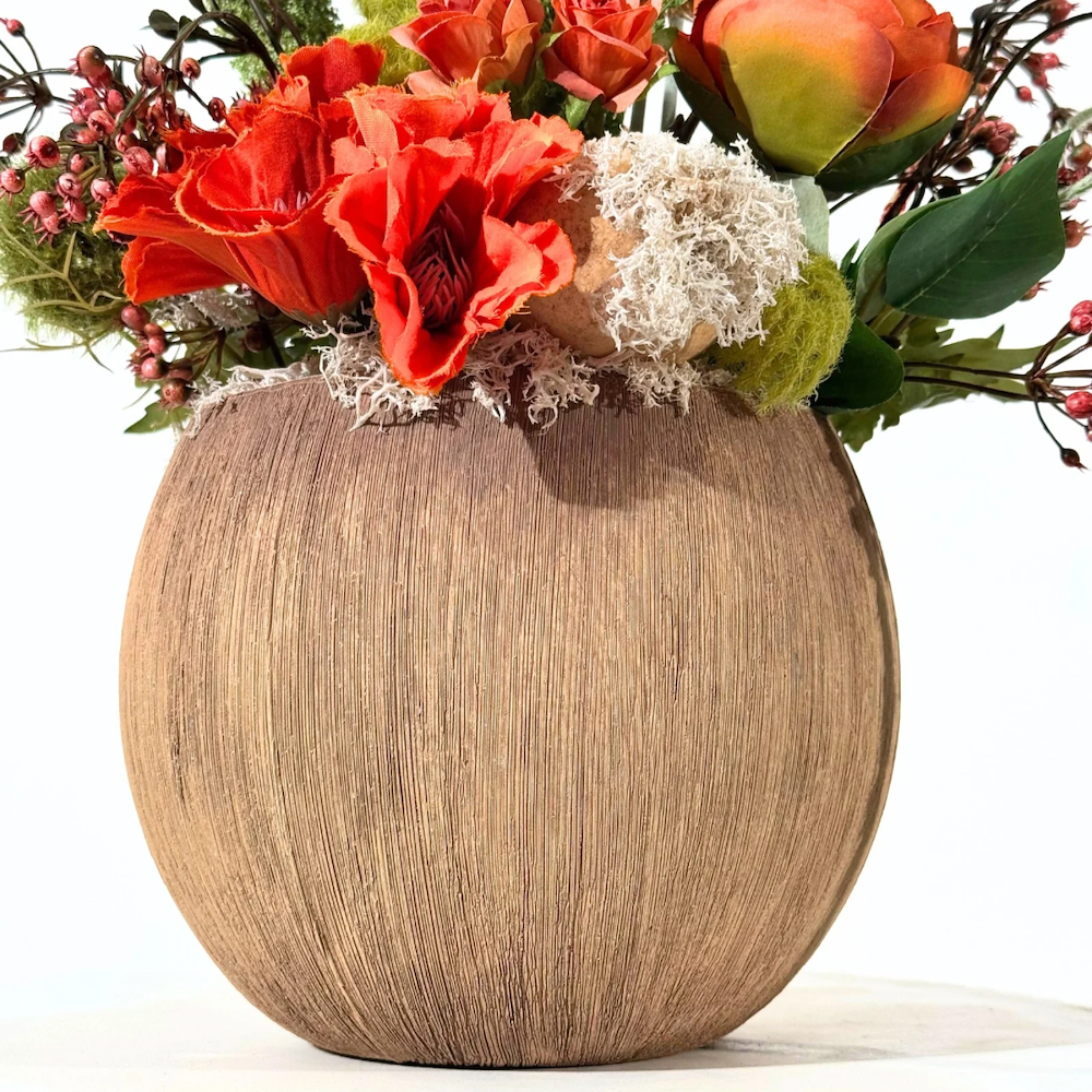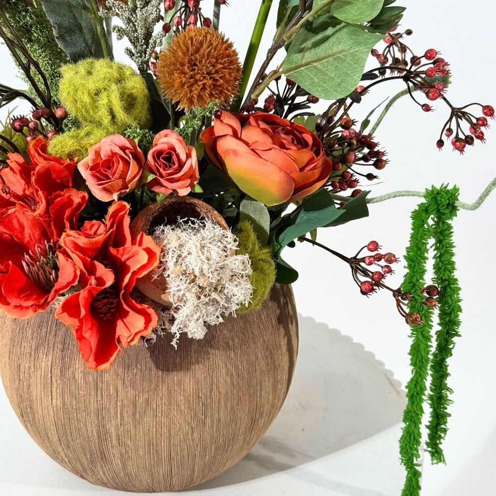 فازة أنيقة مليئة بالأزهار الصناعية، وبتصميم فاخر.