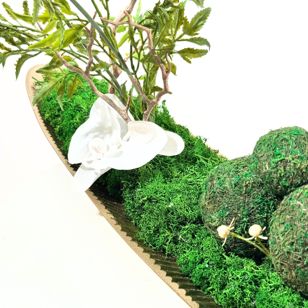 صينية أنيقة بتصميم يحمل لمسات أنيقة ومثالية للتقديم والاهداء من الزهور الصناعية.