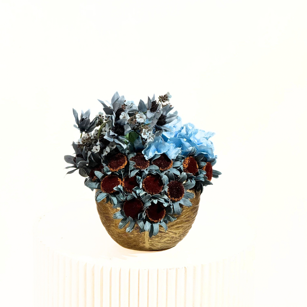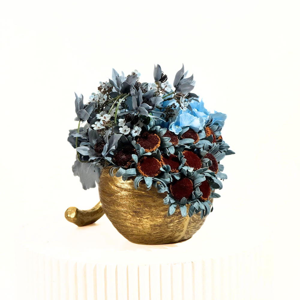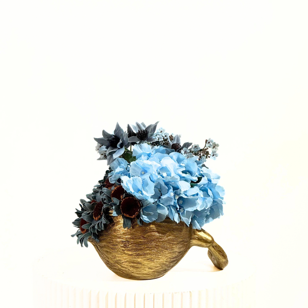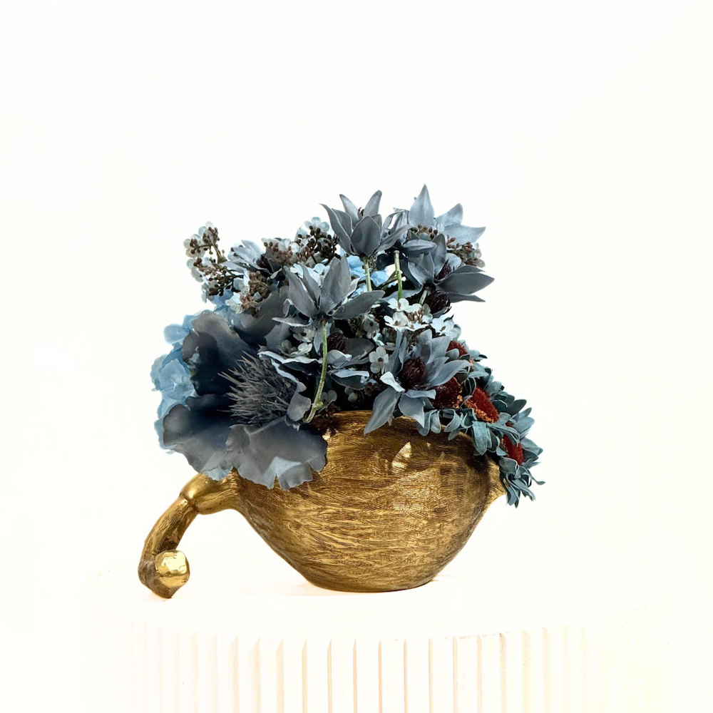 فازة أنيقة تتميز بالأزهار الصناعية.