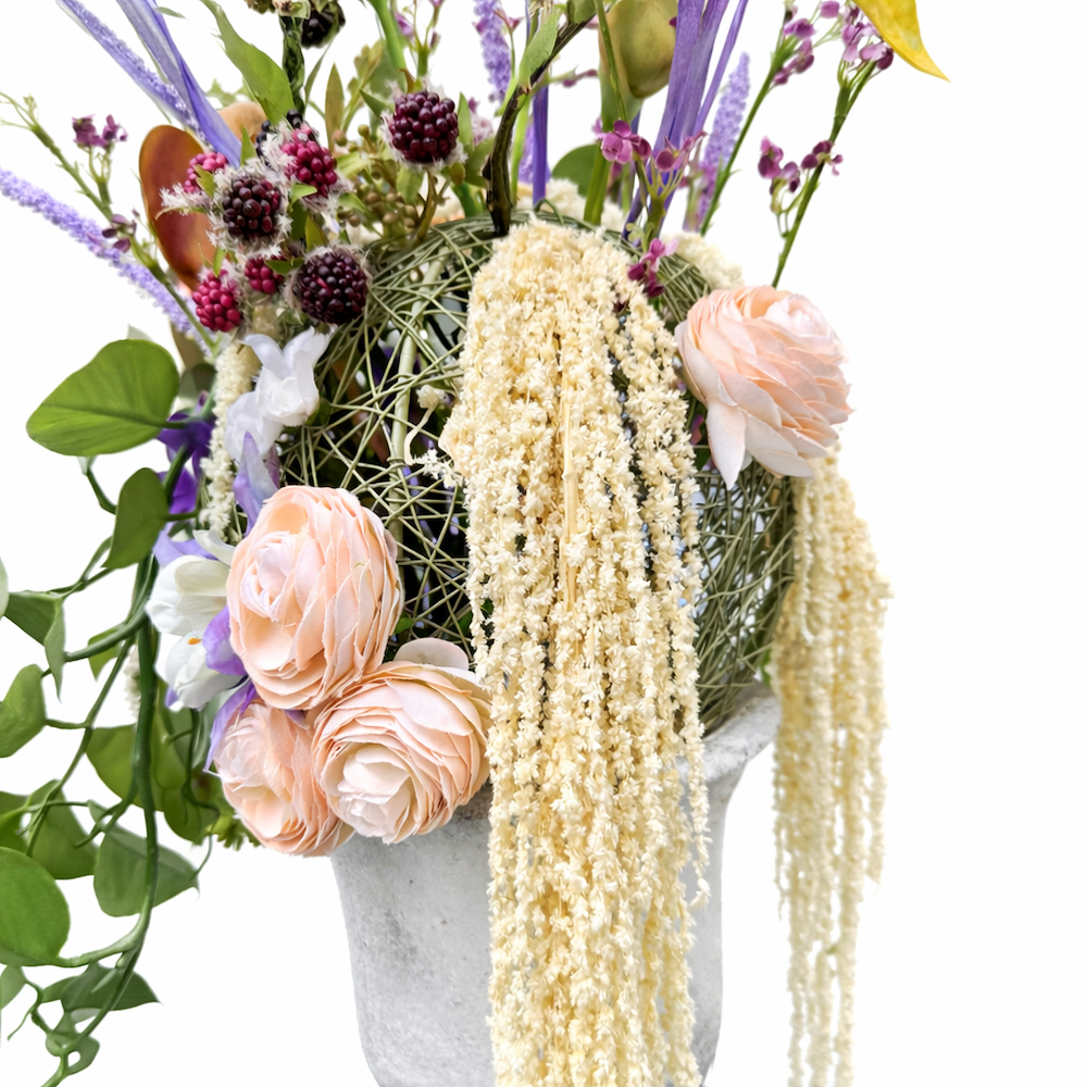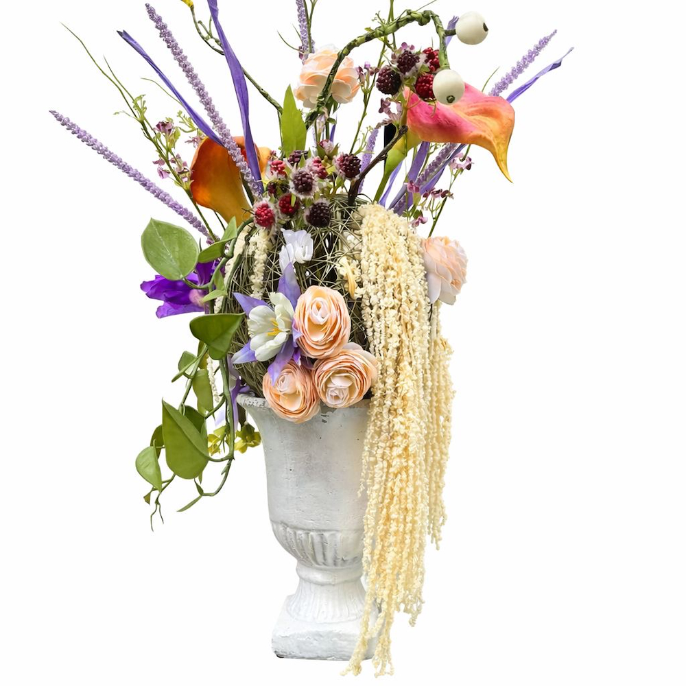 تحفة فنية تجمع بين الفخامة الكلاسيكية والأناقة بفازة من الأزهار الصناعية.
