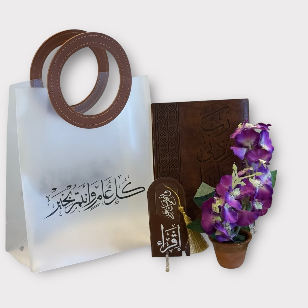علبة مزينة بزهرة الفلامنجو البيضاء (ورد صناعي) مع ربع تولة مسك بعبوة كريستال الحجم مناسب لتوزيعات في اي بي ولطاولات الخدمة والاستقبال مقاس العبوة: 15*6 سم.