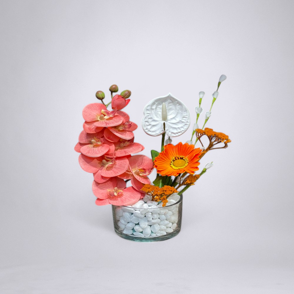 باقة مليئة بالزهور الصناعية.