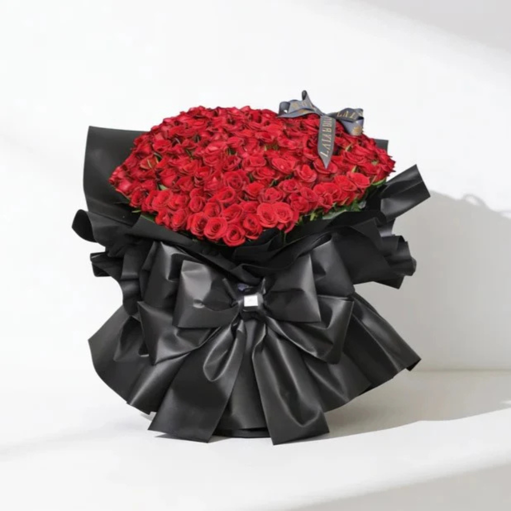 A hand bouquet of 100 red roses shaped like a heart, for your one and only.