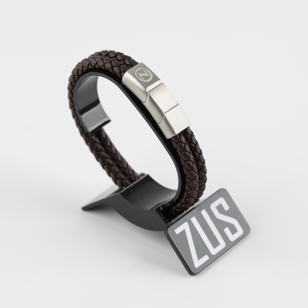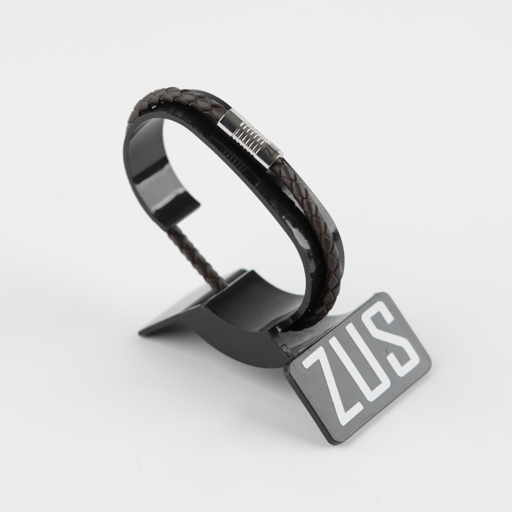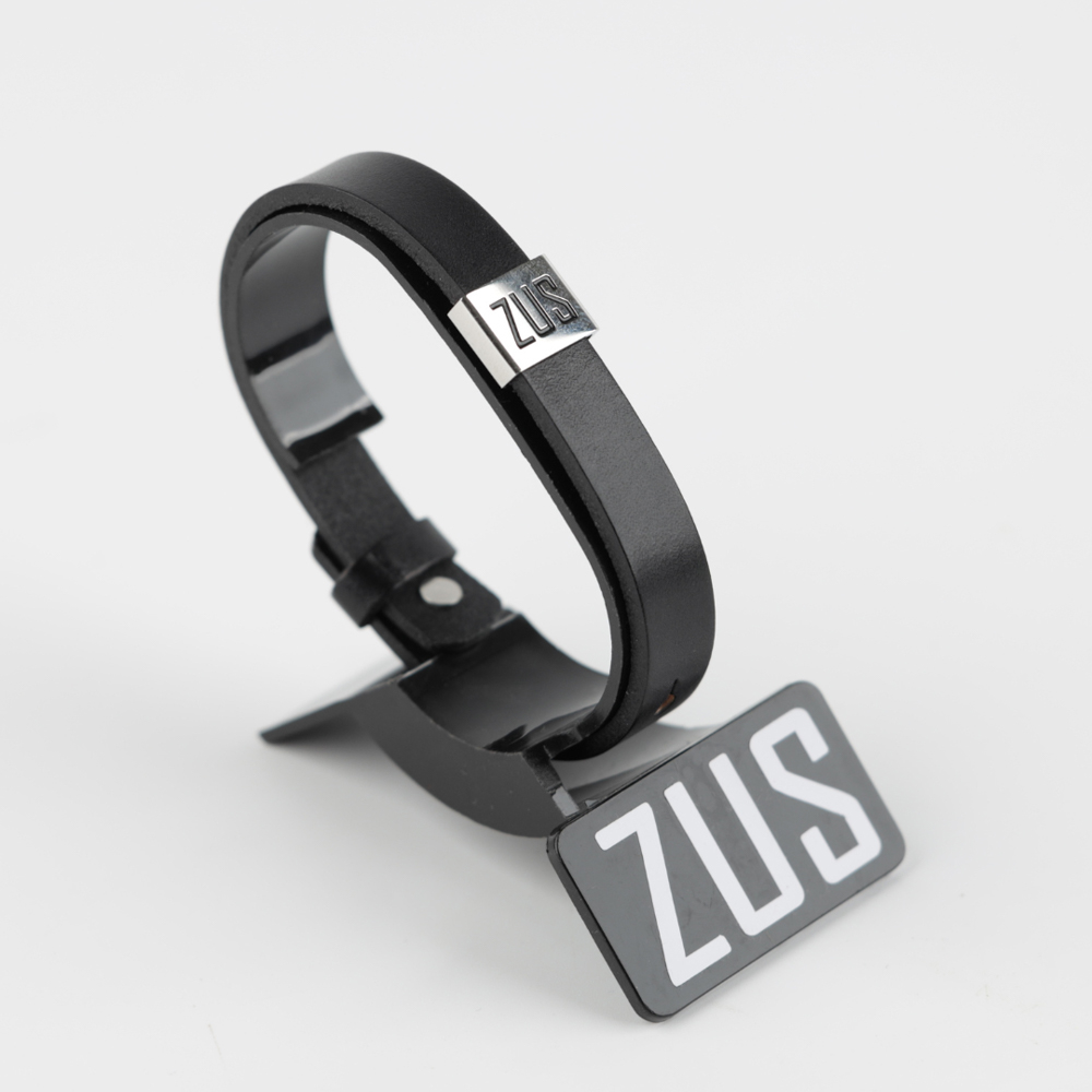 ZUS flat genuine leather bracelet features stainless steel engraved with the signature ZUS logo. Size 19.5 cm to 22 cm.