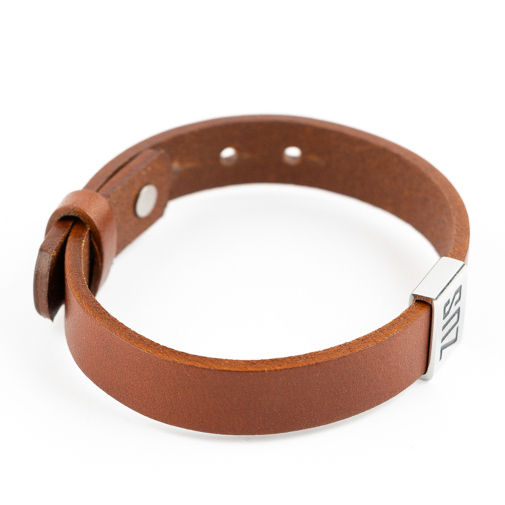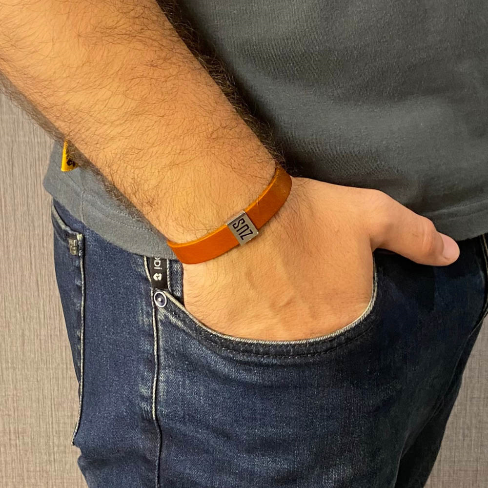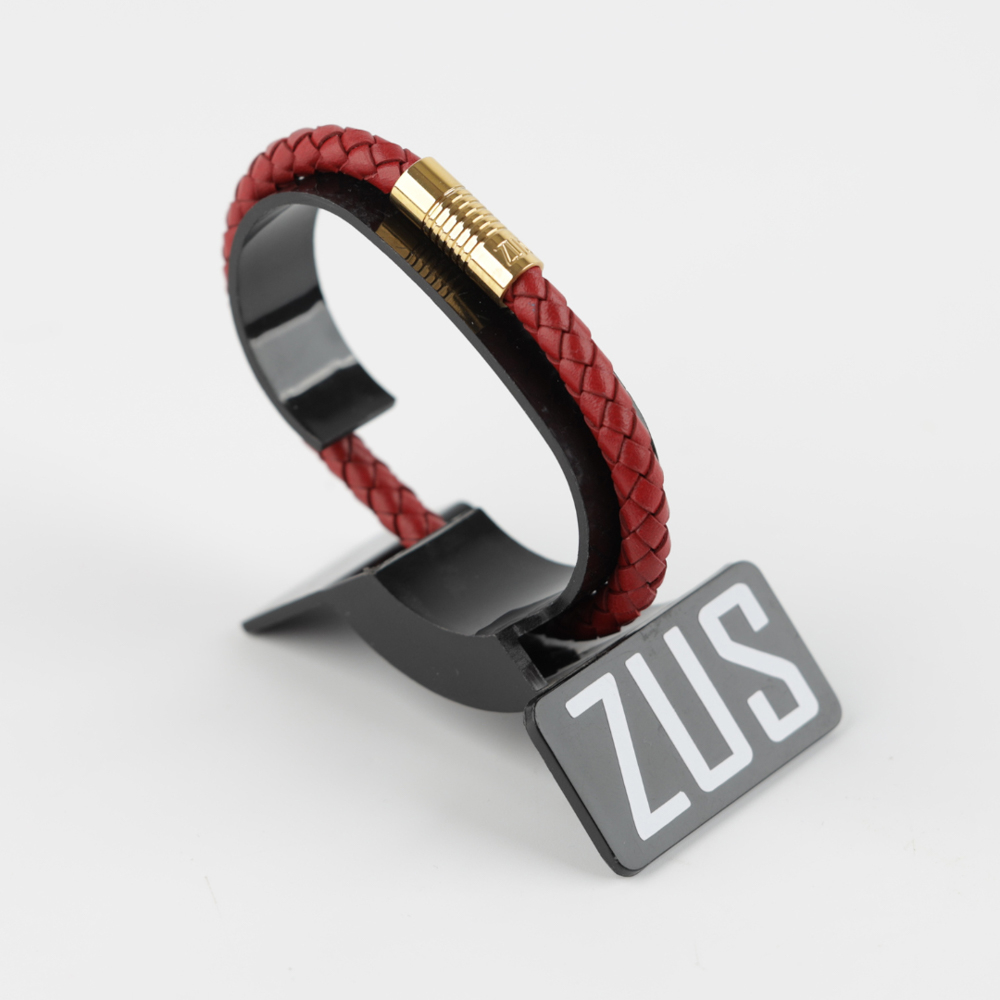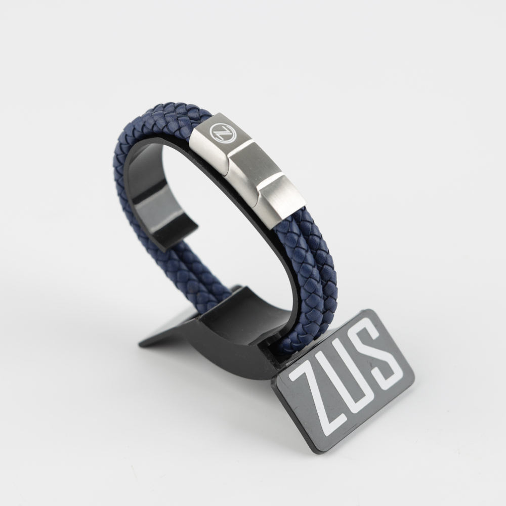 ZUS flat genuine leather bracelet features stainless steel engraved with the signature ZUS logo. Size 19.5 cm to 22 cm.