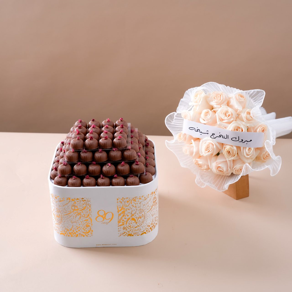 A luxurious selection of royal fudge featuring hazelnut, caramel, almonds, cardamom, and saffron, with approximately 126 pieces and a total weight of 950g.