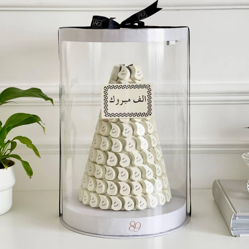 A box 146 pieces of chocolate with barlinosa and raspberry cheesecake fillings.