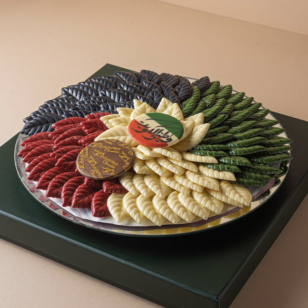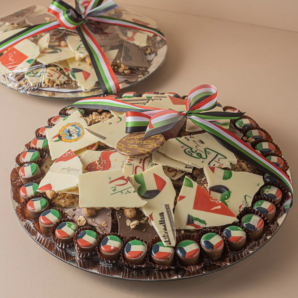 800 gram wrapped chocolate with orchid flower and printed chocolate bar with baby girl wishes.