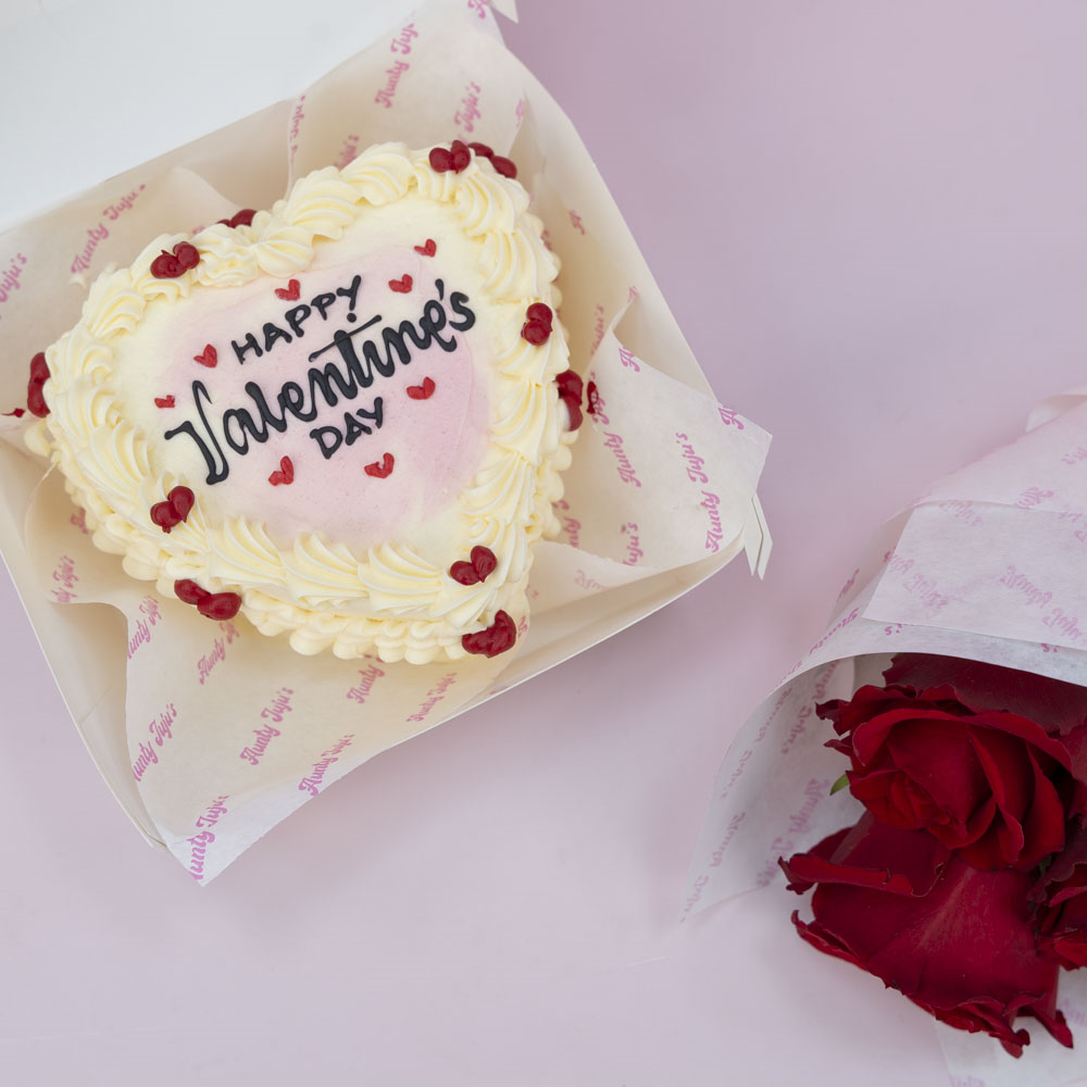 A 4-inch chocolate bento cake, enough for 2 people. Comes with 3 roses.