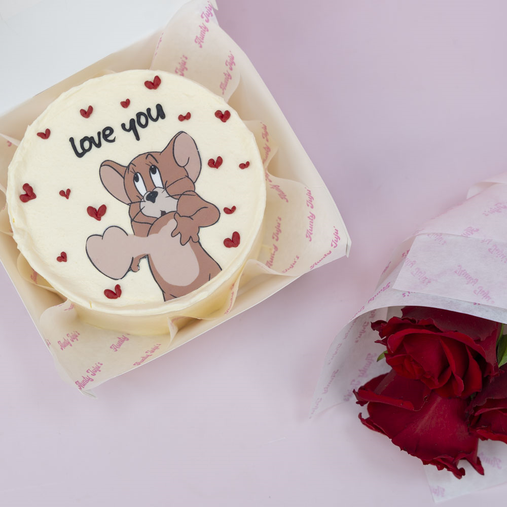 A 4-inch chocolate bento cake, enough for 2 people. Comes with 3 roses.