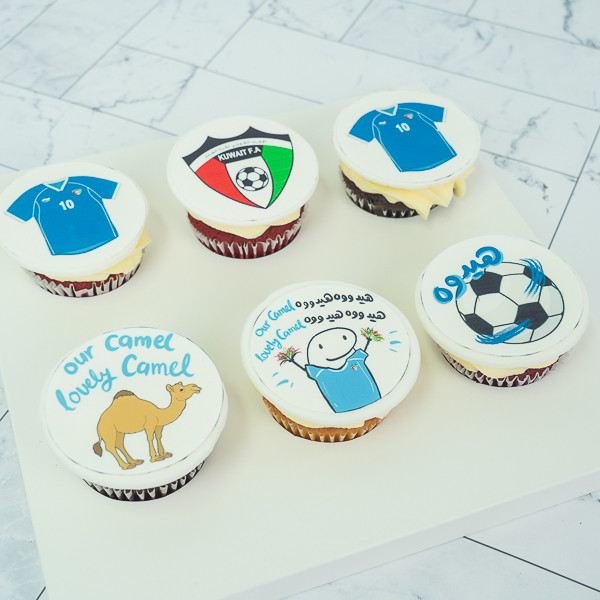 This tray contains chocolate, vanilla and red velvet cupcakes.