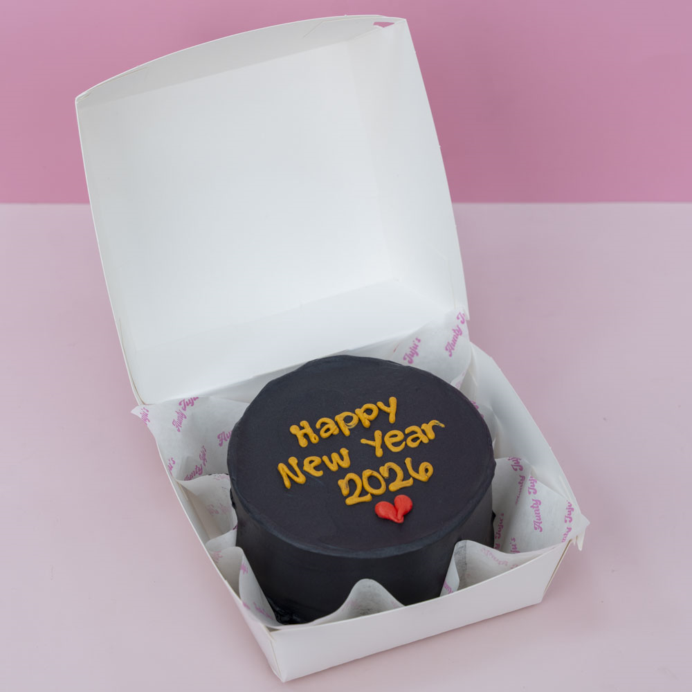 A delicious 4-inch chocolate bento cake, enough for 2 people, served in a carton box.