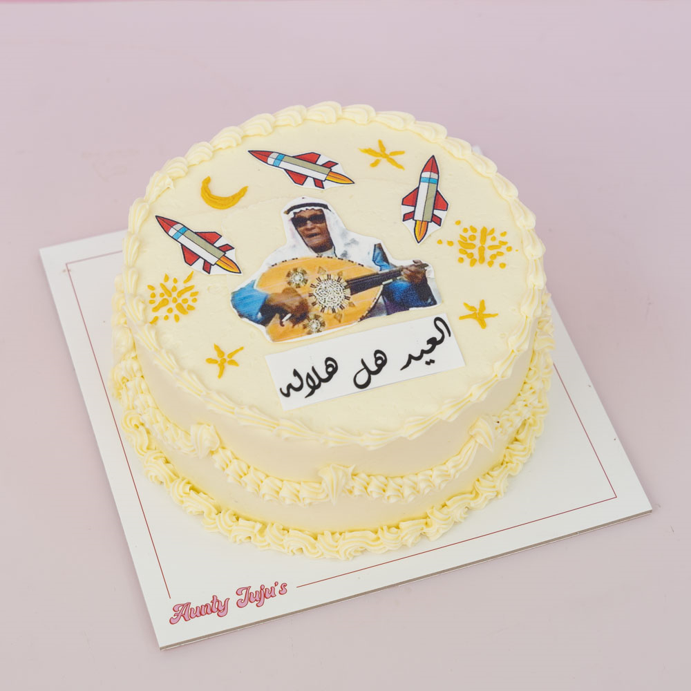 A 6 inch chocolate cake with a beautiful design.