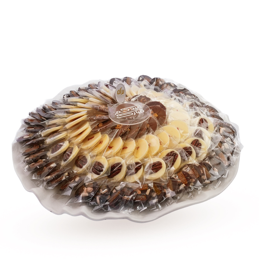 Elegant chocolate Eid tray, contains 715 grams chocolates, the perfect touch for your Eid hospitality.