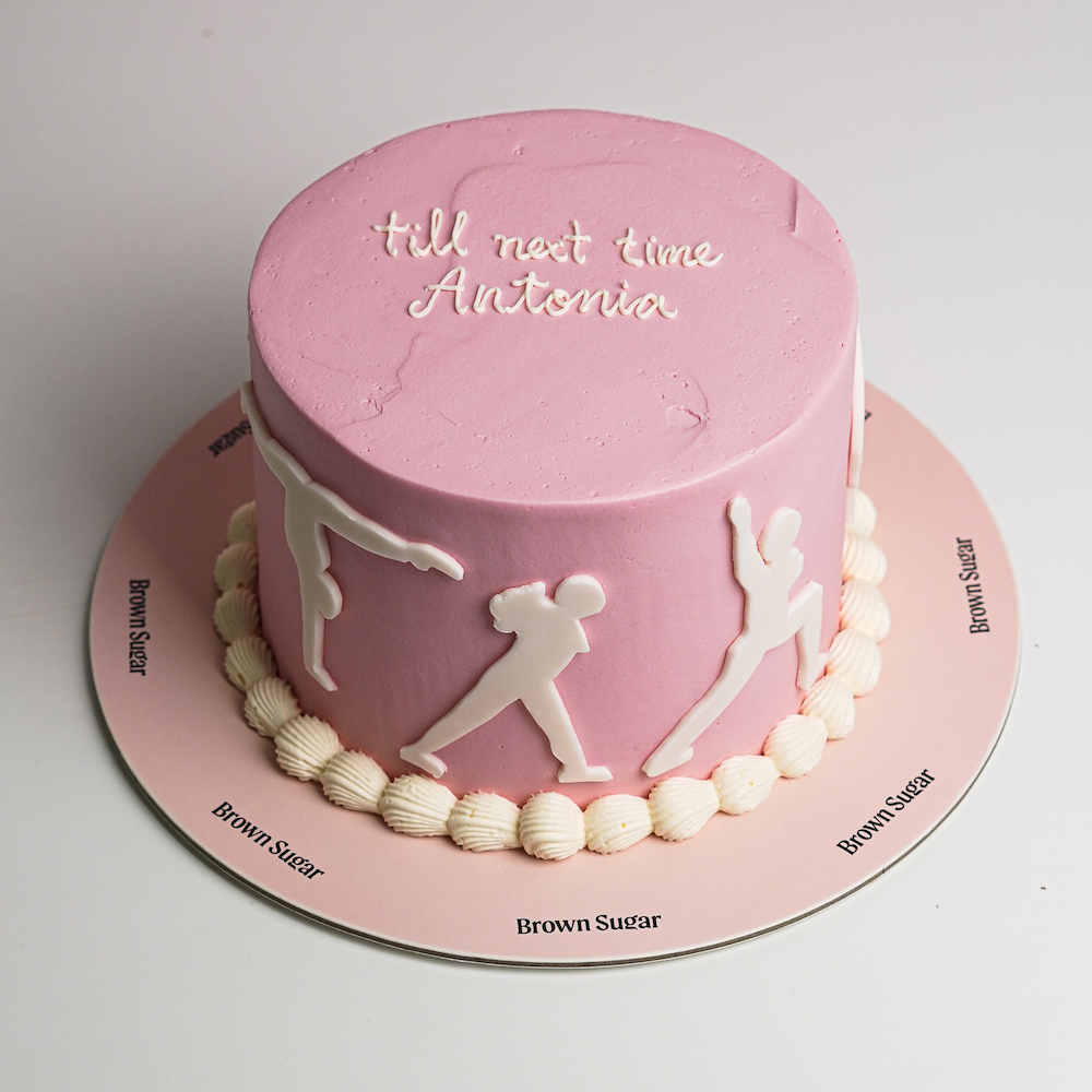 Soft pastel pink buttercream finished with minimalist pilates silhouettes, calm, modern, and perfect for studios, instructors, or wellness lovers.