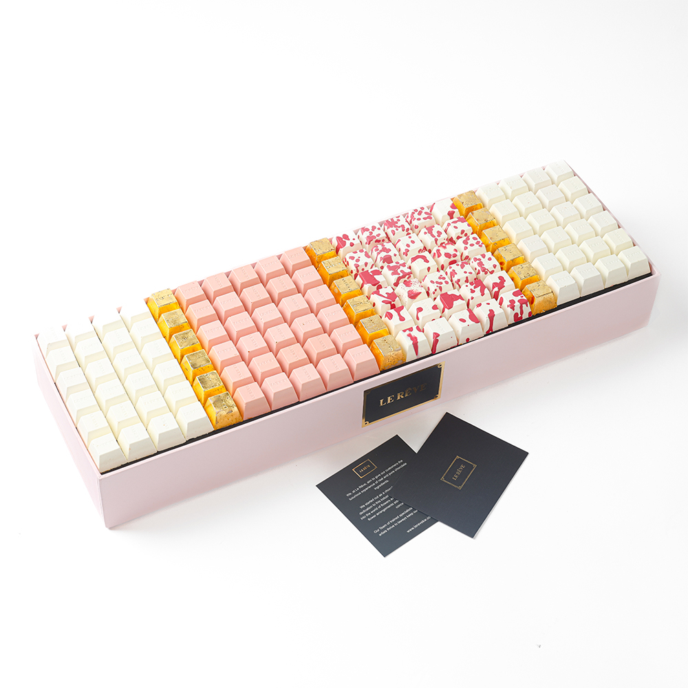A luxurious chocolate tower made of 85 pieces filled with smooth ganache, elegantly designed for all special occasions.