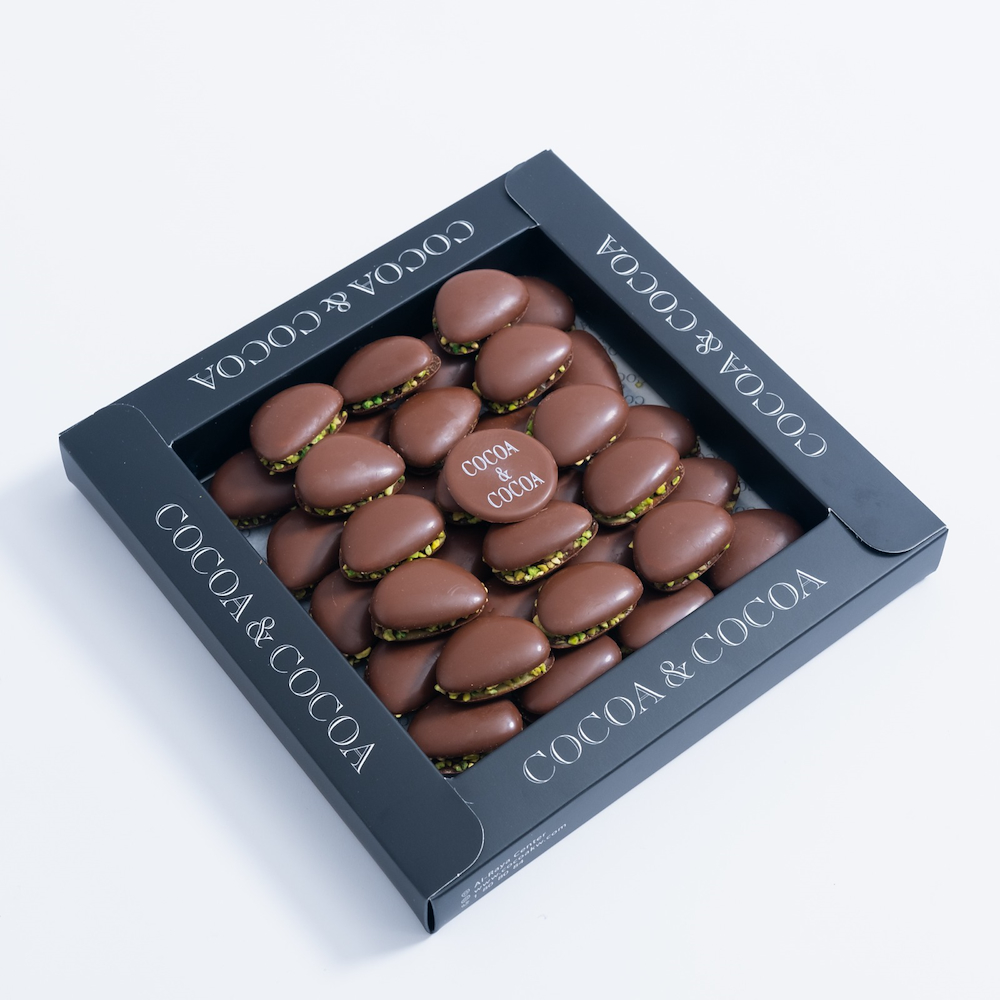 This box contains 500g of double pistachio chocolate.