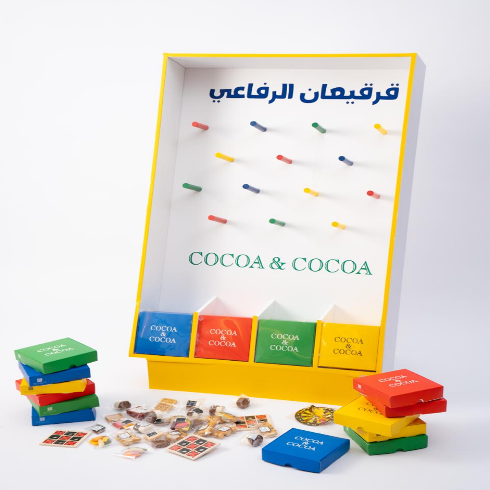 The gergian include 16 boxes of gergian Every box have 6 items(Chocolates, peanuts, samsamiya, dry vegetable, marshmallow & toy) kids and family name.