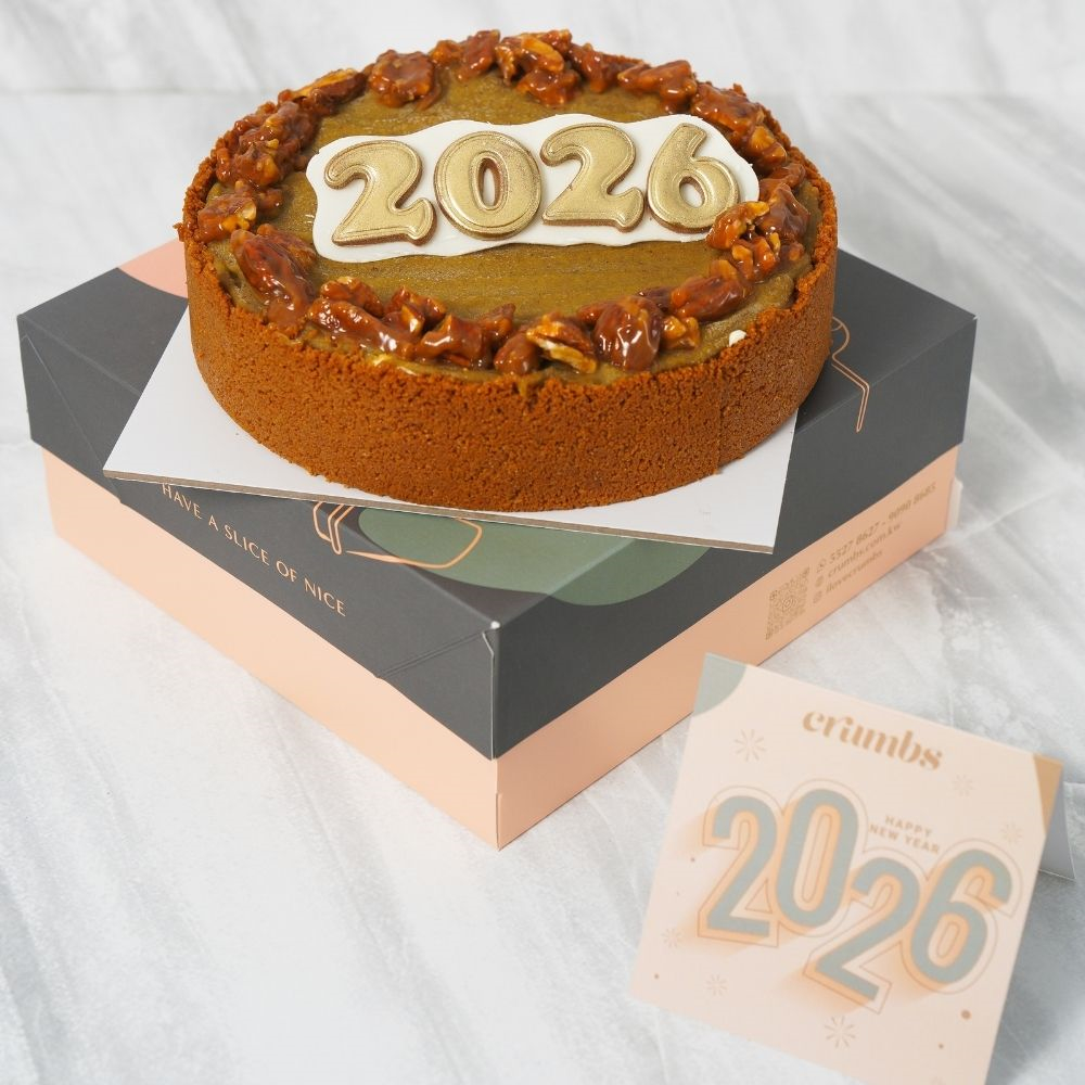 A cheesecake with the Arabic flavors we all love! Biscuit base studded with caramelized pecans, creamy cheesecake filling, topped with traditional Asida sauce and more caramelized nuts. Serves 6 to 8 people.
