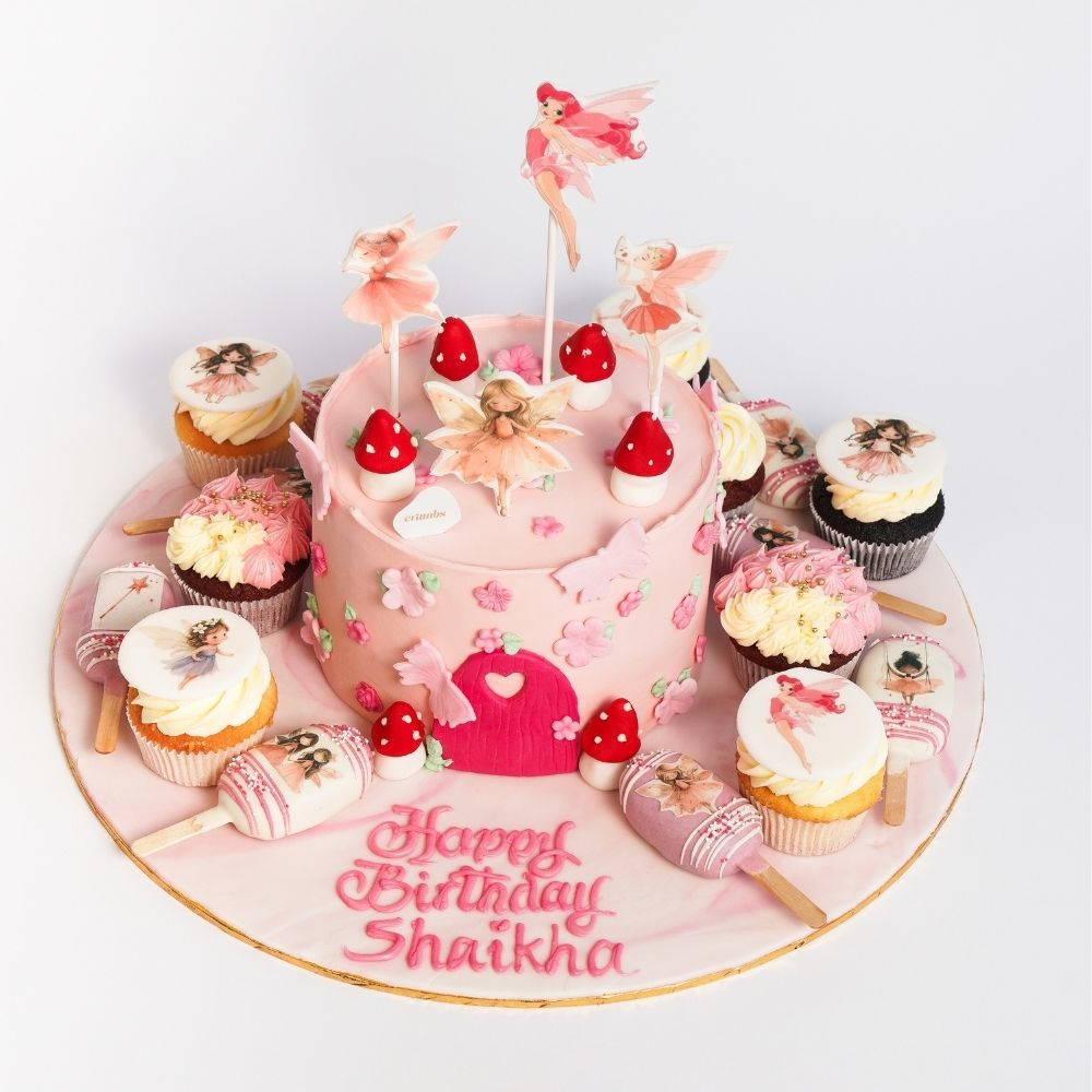 A fun cake that serves 8 to 10 people, with 9 cakesickles and 9 cupcakes in different flavors. The cake flavor is chocolate unless requested otherwise. The full package serves 24 to 28 kids.