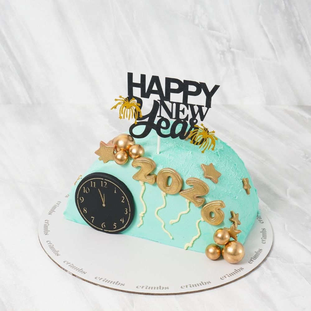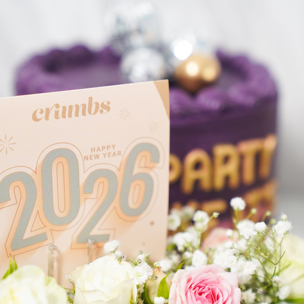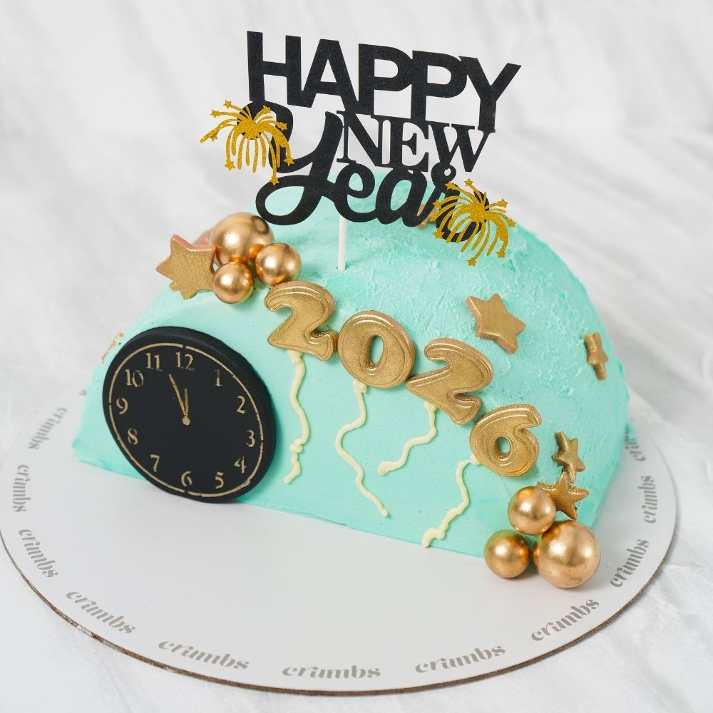 Celebrate the New Year with this cake from Crumbs. This cake serves 6 to 7 people. Delicious chocolate flavor unless requested otherwise.
