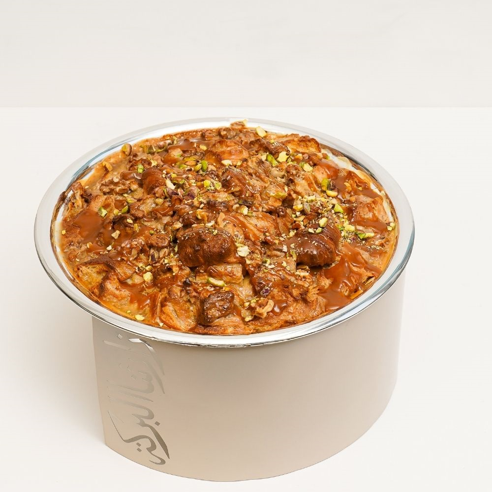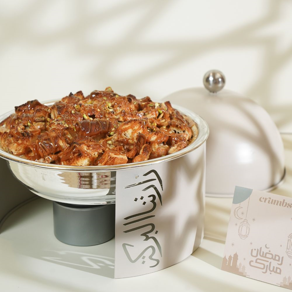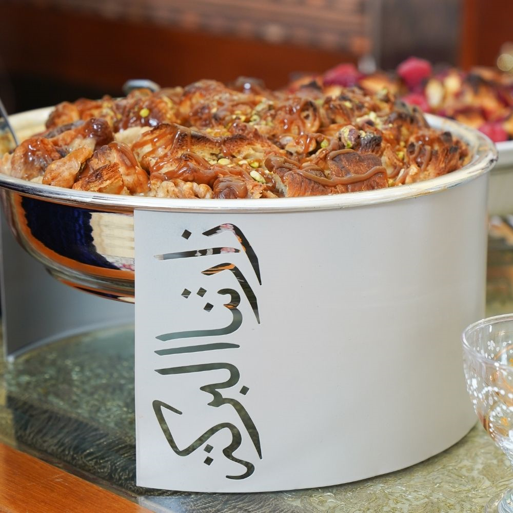 Also known as cinnamon roll Om Ali, with vanilla custard, and crunchy top. Serve for 8 to 10 persons, served in an elegant hot plate.
