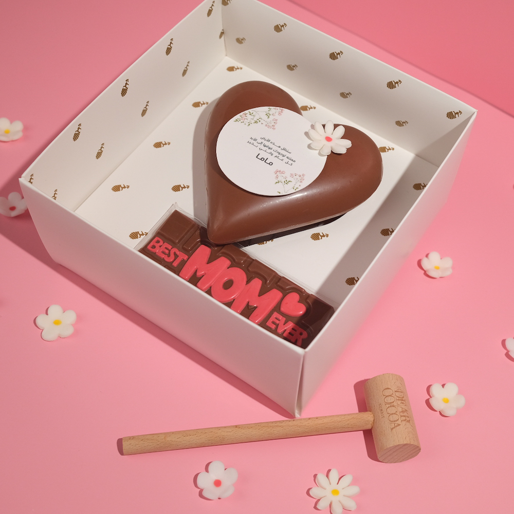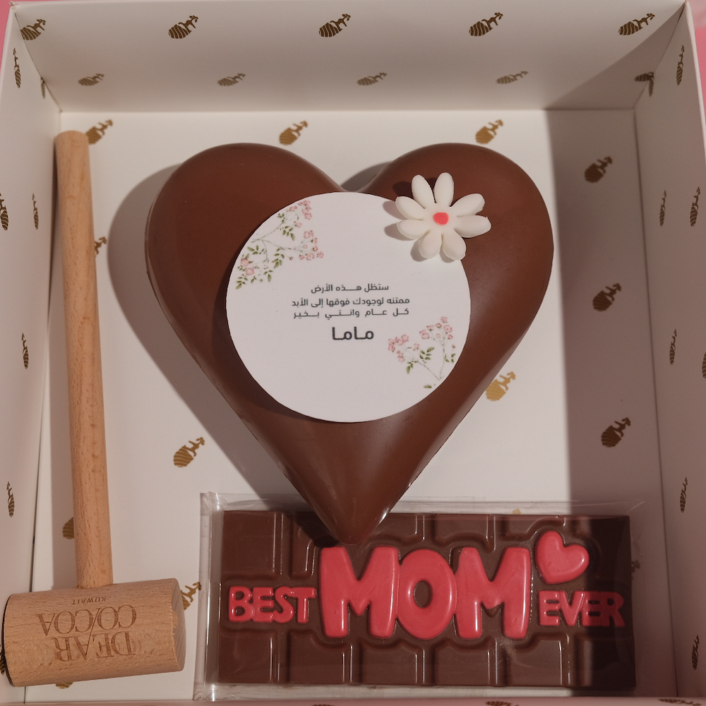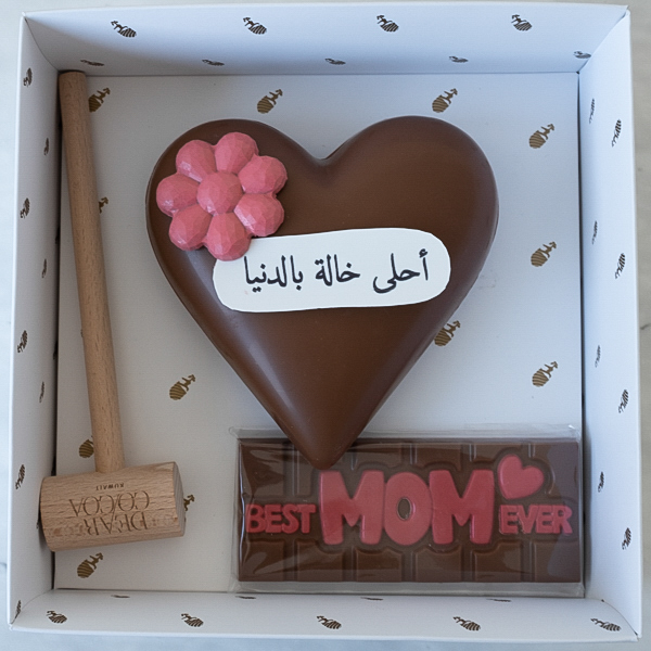 This heart shaped chocolate contains 4 pieces of chocolates. Comes with a hammer and a Mother's Day chocolate bar.