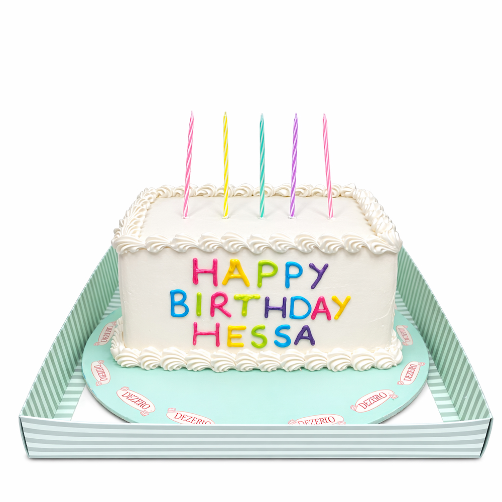 A chocolate cake, you can customize the name on the cake and it is enough for 5 to 8 persons.