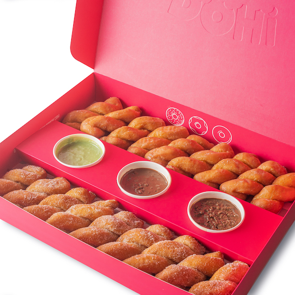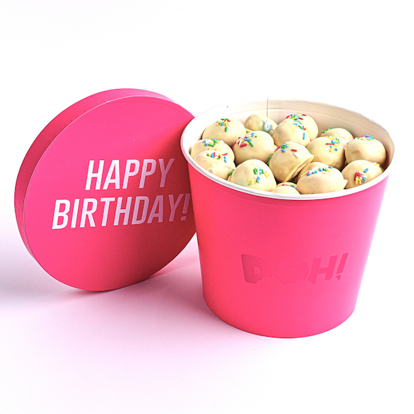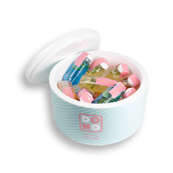 A large bucket filled with 70 to 80 pieces of Kinder, Nutella, Original and Little Mess (pistachio).