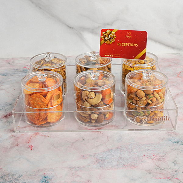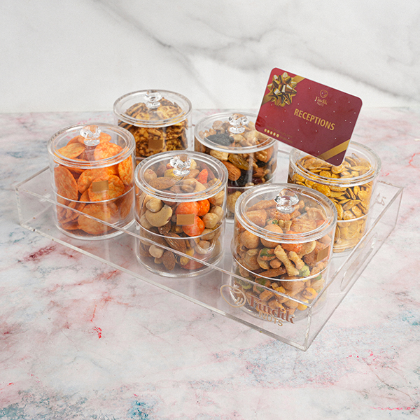 A nuts provides you with many delicious snacks to be enjoyed with your family and friends. Damas box includes: Qoroush debs alroman. Mix crackers Malaysian nachos. Super extra mixed nuts. Diwaniya mix. Squash smoked seeds findik. Mix biscuits findik.