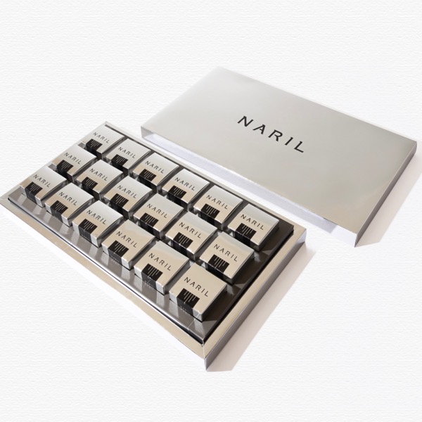 A box that contains 30 pieces of milk chocolate cookies wrapped individually, customized with names.